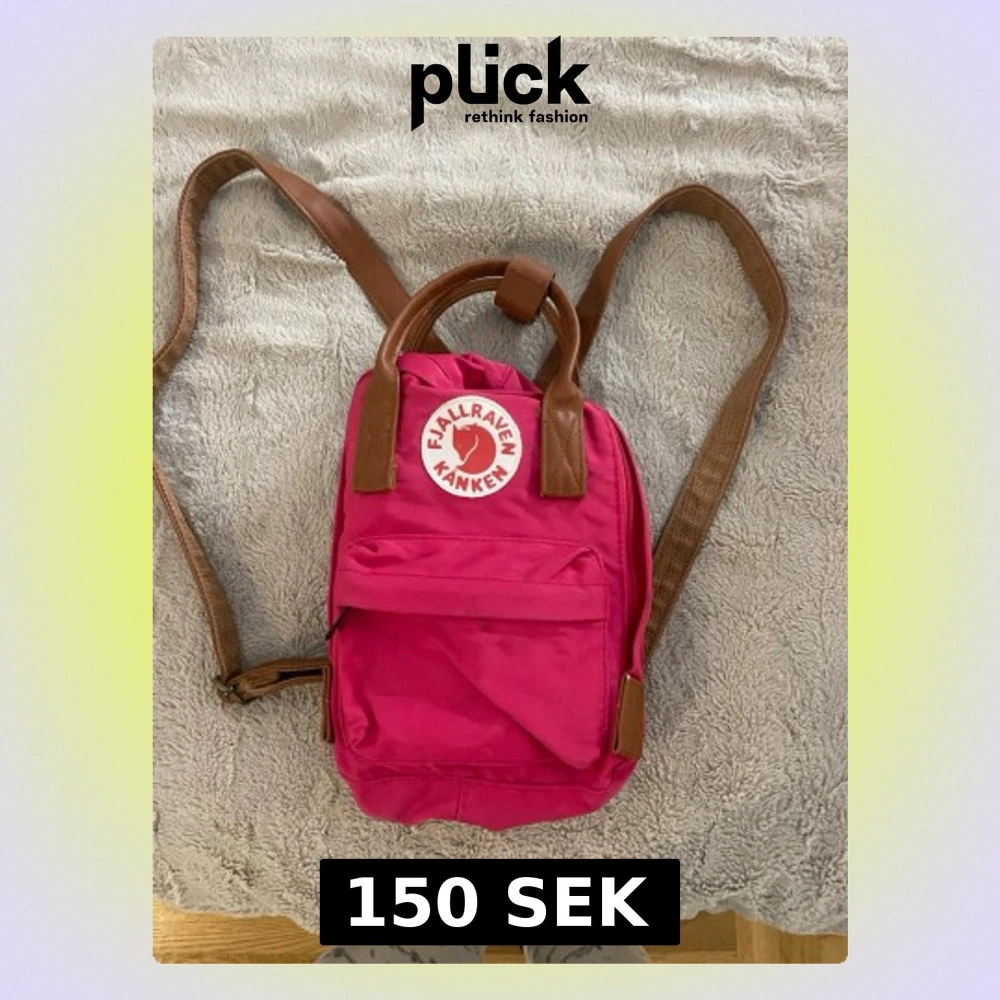 Säljer en snygg rosa Kånken ryggsäck från Fjällräven med bruna detaljer och axelremmar. Väskan har ett klassiskt rundat handtag, framficka med lock och det ikoniska Fjällräven-märket framtill. Perfekt storlek för vardagsgrejer och enkel att bära.