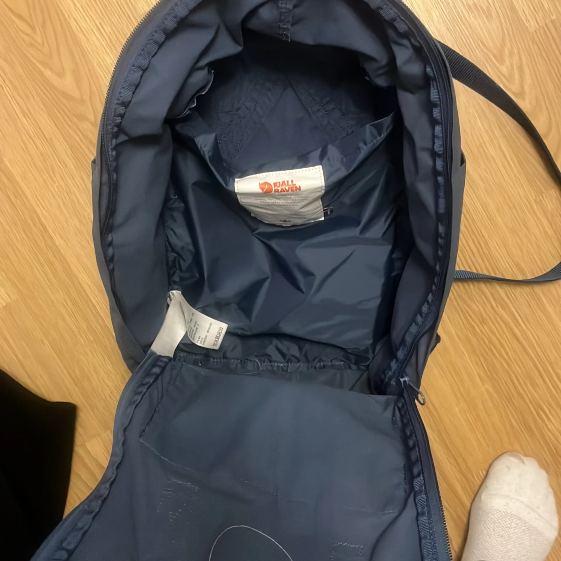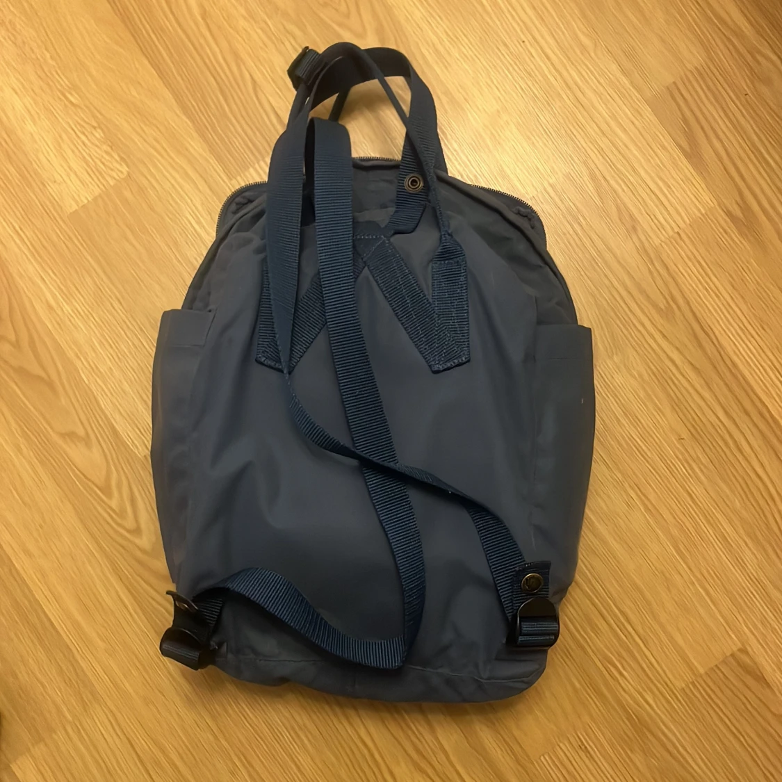 Klassisk mörkblå Fjällräven Kånken ryggsäck med ikonisk rund logga framtill. Ryggsäcken har ett stort huvudfack, framficka med dragkedja och två sidofickor. Tillverkad i slitstark syntet och har både bärhandtag och justerbara axelremmar. Skulle gissa att detta mellan storlek för det är inte den minsta men inte heller den största kånken modellen, men den är perfekt till skola och rymmer allt man behöver.