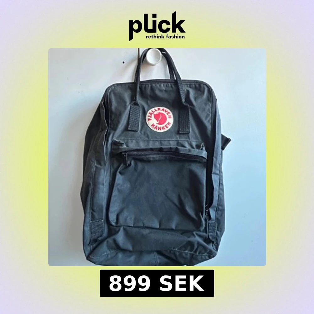 Fjällräven Kånken Laptop i färgen svart. Nypris 1799 kr. Jättesmidig och rymlig, säljer för att jag inte har någon användning för den. Ryggsäcken har ett stort huvudfack, en dragkedjeförsedd ytterficka, ett sidoficka, handtag och justerbara axelremmar.