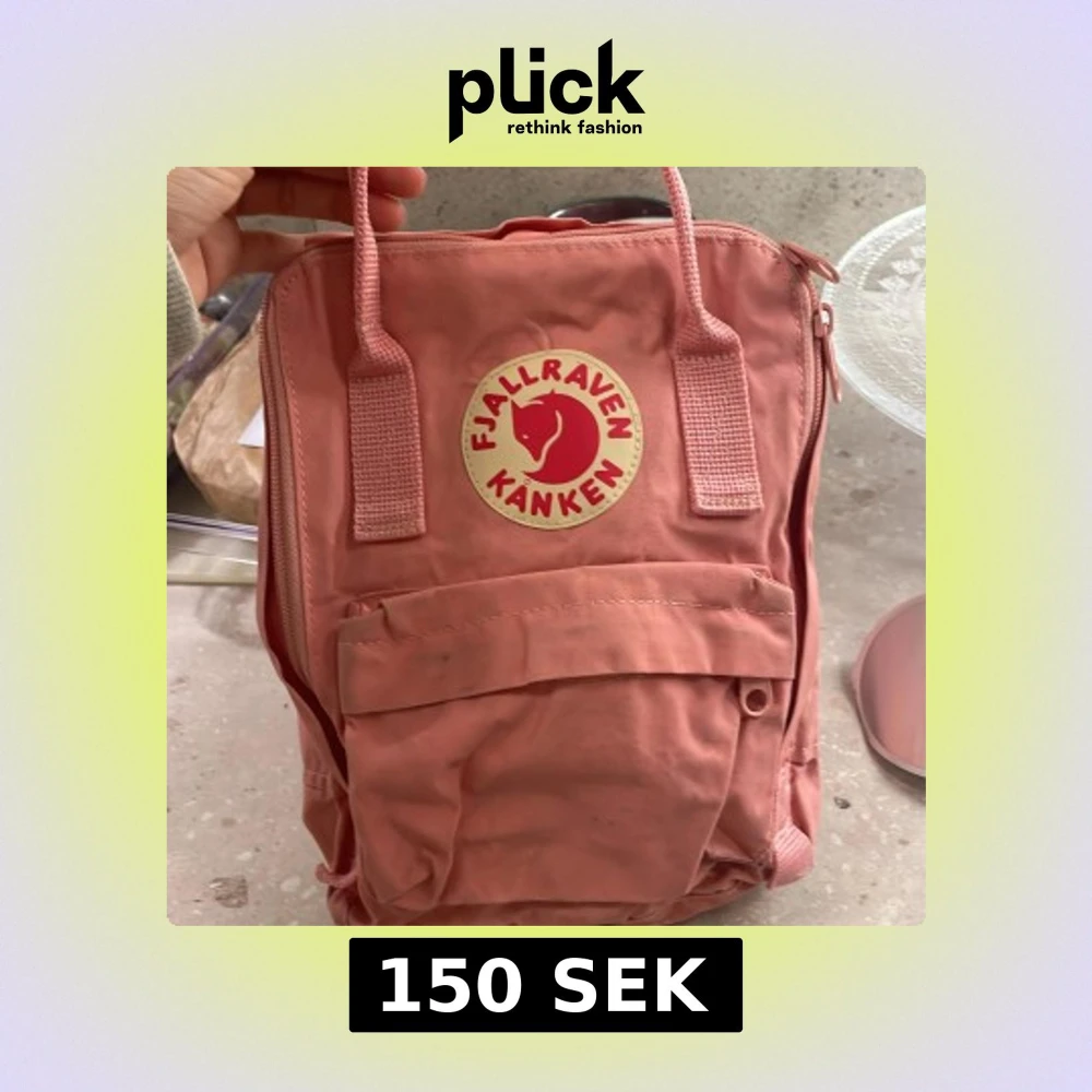 Säljer en klassisk rosa Fjällräven Kånken ryggsäck. Den har justerbara axelremmar och en praktisk dragkedja upptill. Perfekt för vardagsbruk eller utflykter.