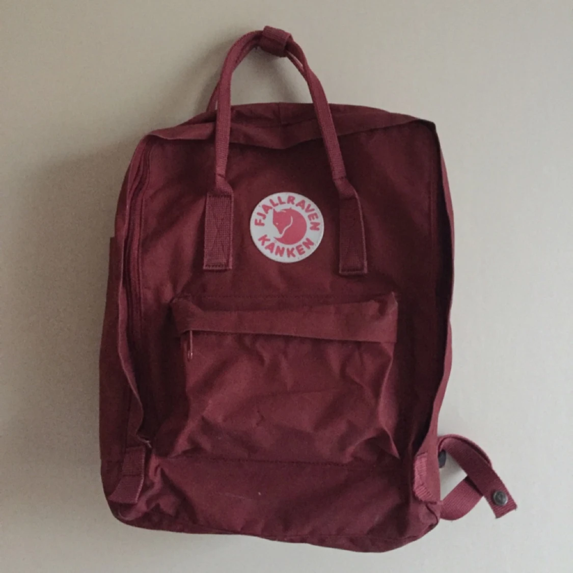 oxblodsröd fjällräven kånken, använd ett fåtal gånger, därav i bra skick. köparen betalar frakt.