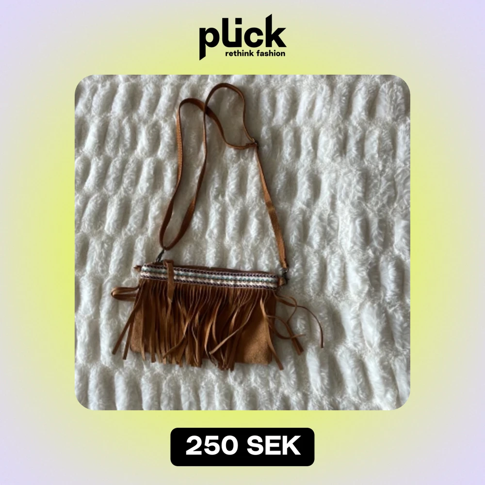 Gullig väska med Fransar Äkta läder En liten ficka på sidan Fint skick