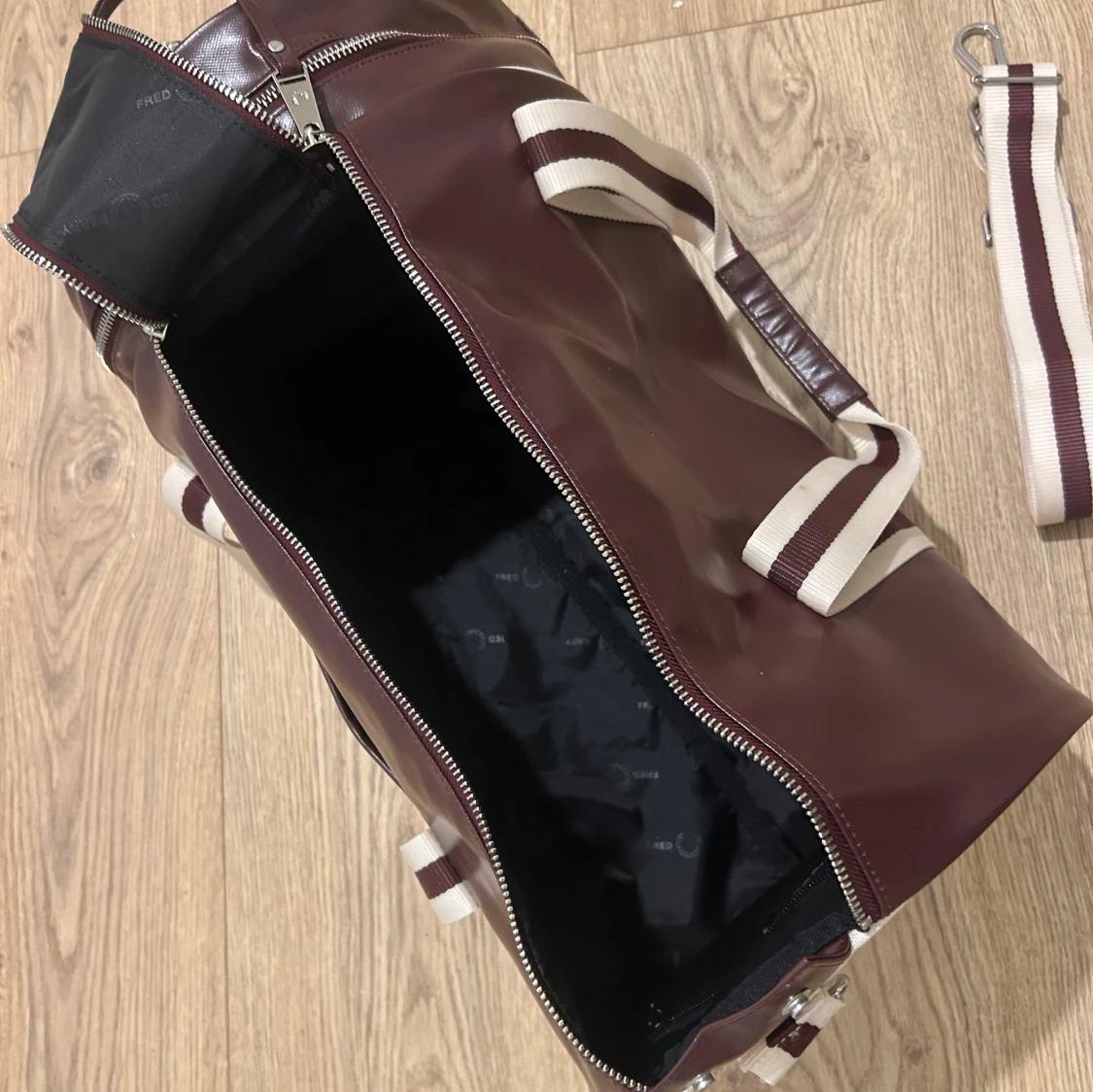 Fred Perry barrel bag. Knappt använd så den är i nyskick. Den är äkta, köpt ifrån fred perrys officiella.