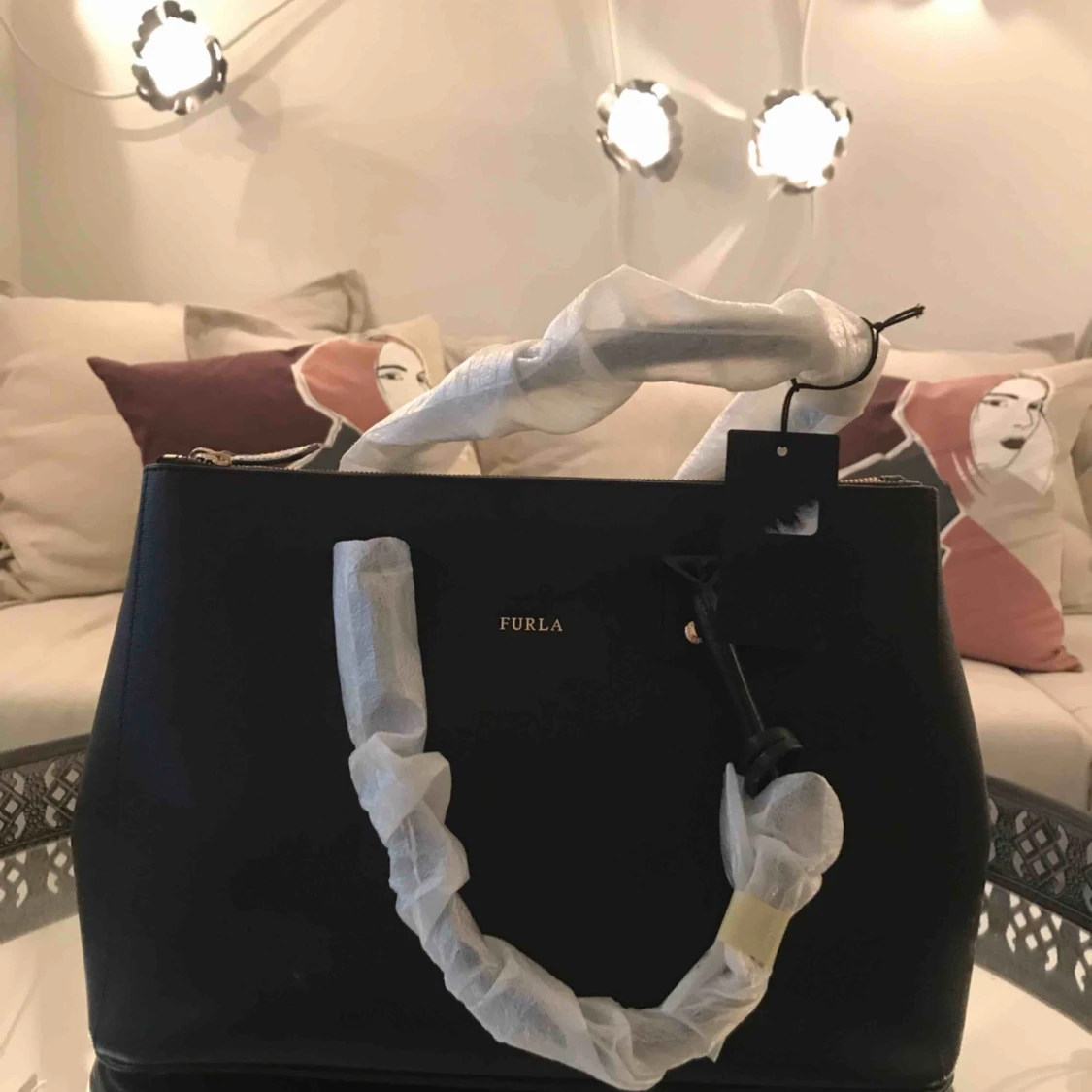 En svart väska ifrån äkta Furla Dust bag och prislapp tillkommer! Kvitto finns ej kvar. Aldrig använd och handtagen är fortfarande inpackade. Vid flera intressen, budgivning!
