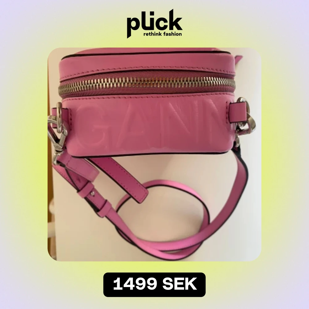 GANNI Väska Crossbody bag ( juster samt avtagbart bälte) fick på insidan. Strl: H 17,5 L 12,5 cm. Material: 100% återvunnet läder. (Insidan 100% återvunnen bomull). Skick: Använd ett fåtal gånger. Väldigt fint skick. Lite skråma se inringning