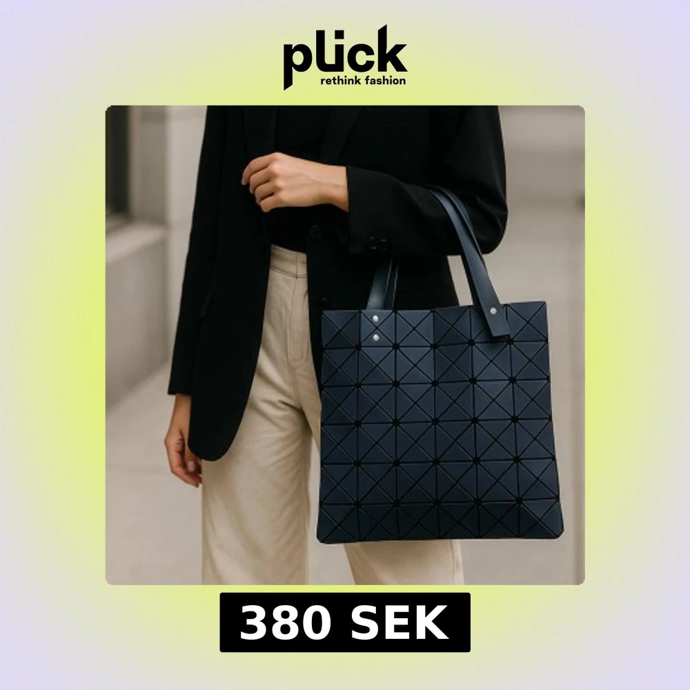 Trendig tote-väska med ett geometriskt mönster av flexibla triangulära paneler som rör sig med väskan och skapar en modern och futuristisk look. Inspirerad av en välkänd designerstil. Väskan är lätt men rymlig – perfekt till vardags, jobbet eller resan. Den har bekväma dubbla handtag och stängs upptill med tryckknapp. En statement-väska som ändå är enkel att matcha med både avslappnade och mer uppklädda outfits.