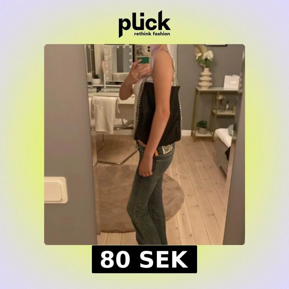 Cool svart axelväska från Gina Tricot med silverfärgade kedjor längs sidorna och som axelrem. Väskan har en mjuk, lite slouchy form och är tillverkad i syntetmaterial som ger en skinnliknande känsla. Perfekt storlek för att få plats med allt du behöver.
