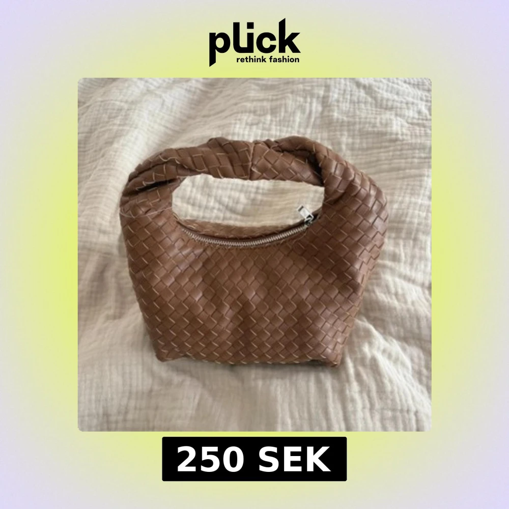 Snygg brun axelväska i flätat skinn med twistad handtag och silverfärgad dragkedja. Väskan har en modern, mjuk form och är perfekt för dig som gillar trendiga accessoarer med stilren känsla. Köpt på Gina för 399kr. Använt ett fåtal gånger