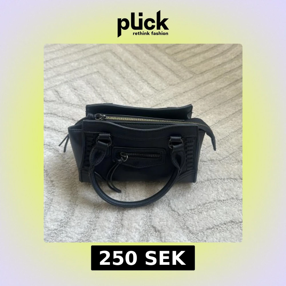 Säljer en svart mini handväska från Ginatricot. Perfekt storlek för det viktigaste och stilren design. Använd några gånger därav lite små defekter på handtagen, kastade tyvärr axelremsbandet som man fick med💖