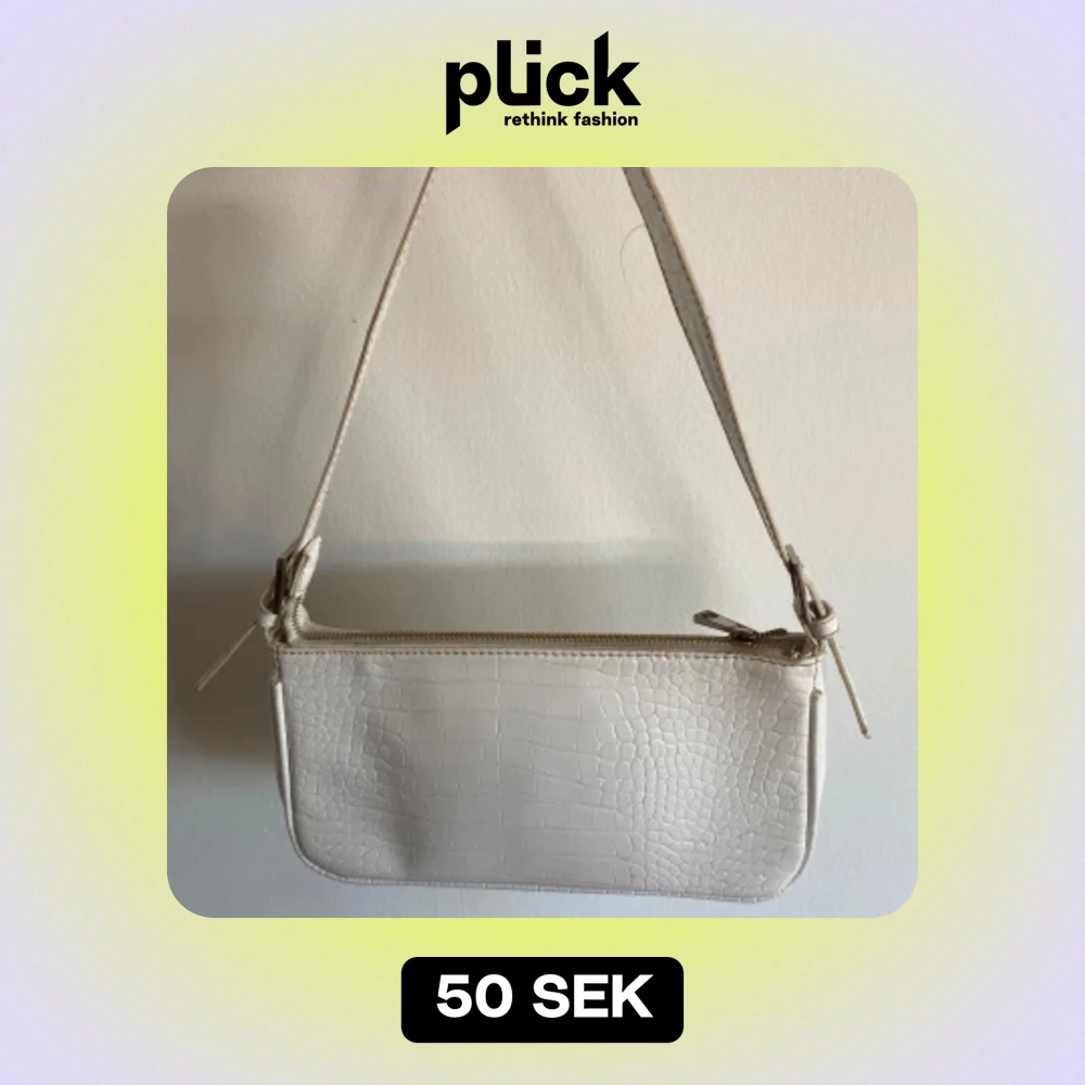 Vit handväska Sitter stabilt under axelpartiet så svårare att någon tar den Från Gina Tricot Använd ett flertal gånger Bra skikt Lite lösa trådar Blekt Dragkedja