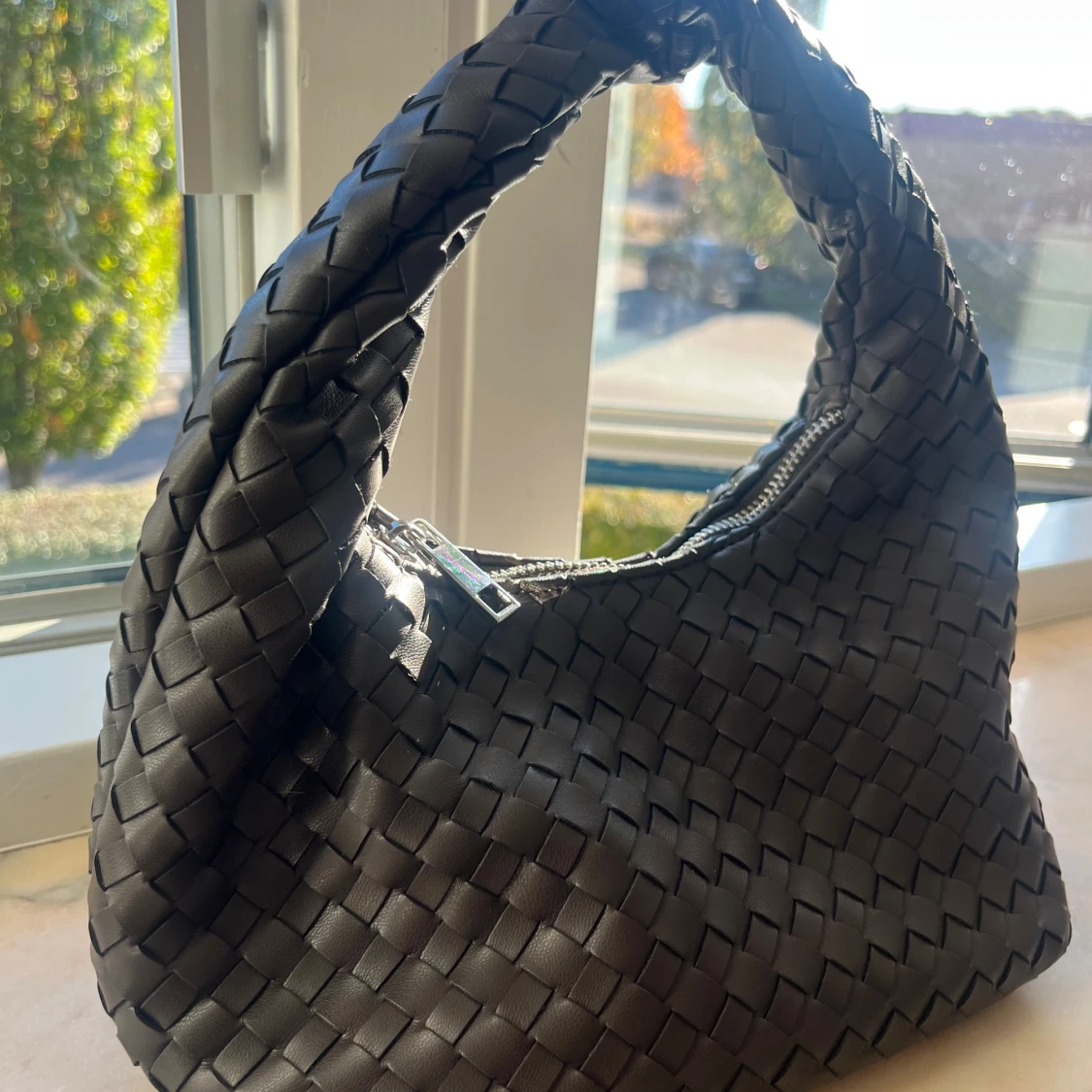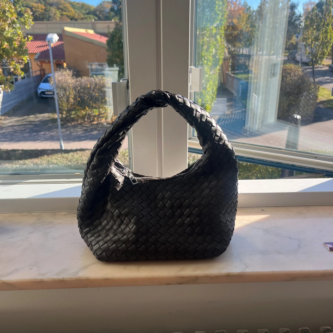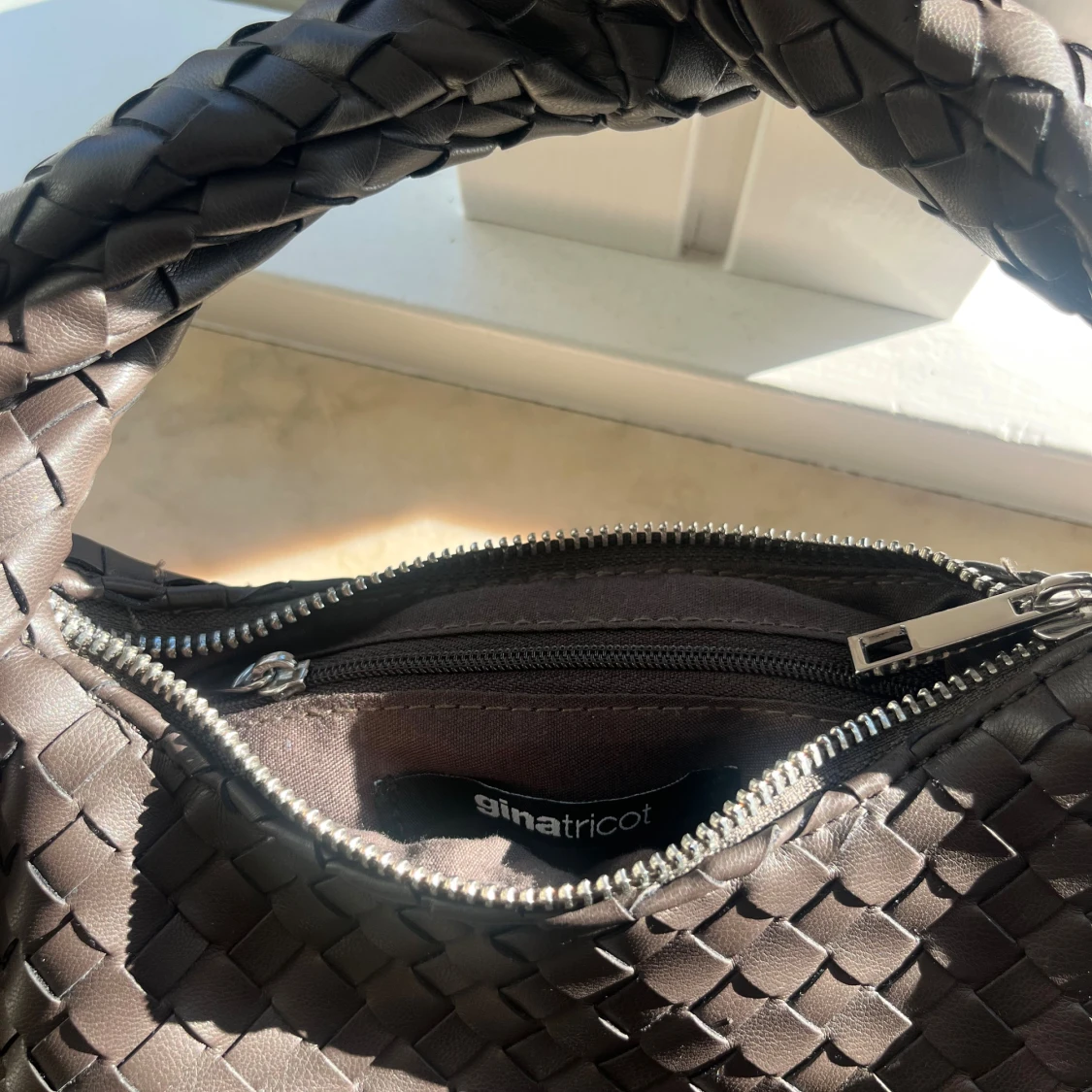 Snygg mörkbrun axelväska från Gina Tricot i flätad skinnimitation. Väskan har en rundad form, dragkedja upptill och ett innerfack med extra dragkedja. Perfekt för att lyfta din outfit med en trendig touch. Är i super bra skick 💗
