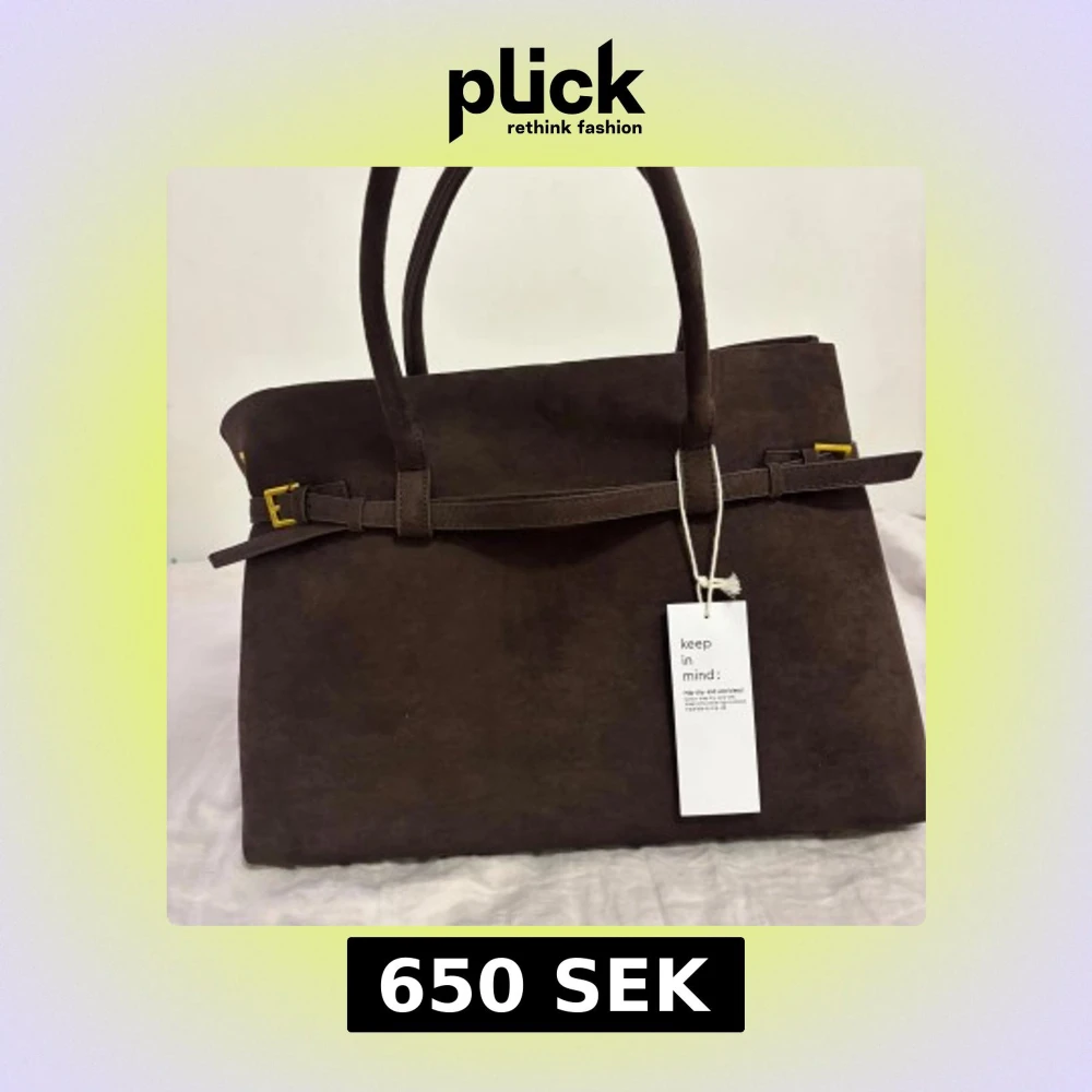 Mörkbrun mocka handväska med bälte