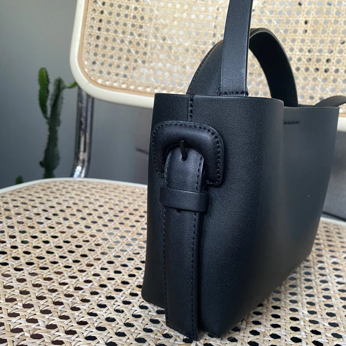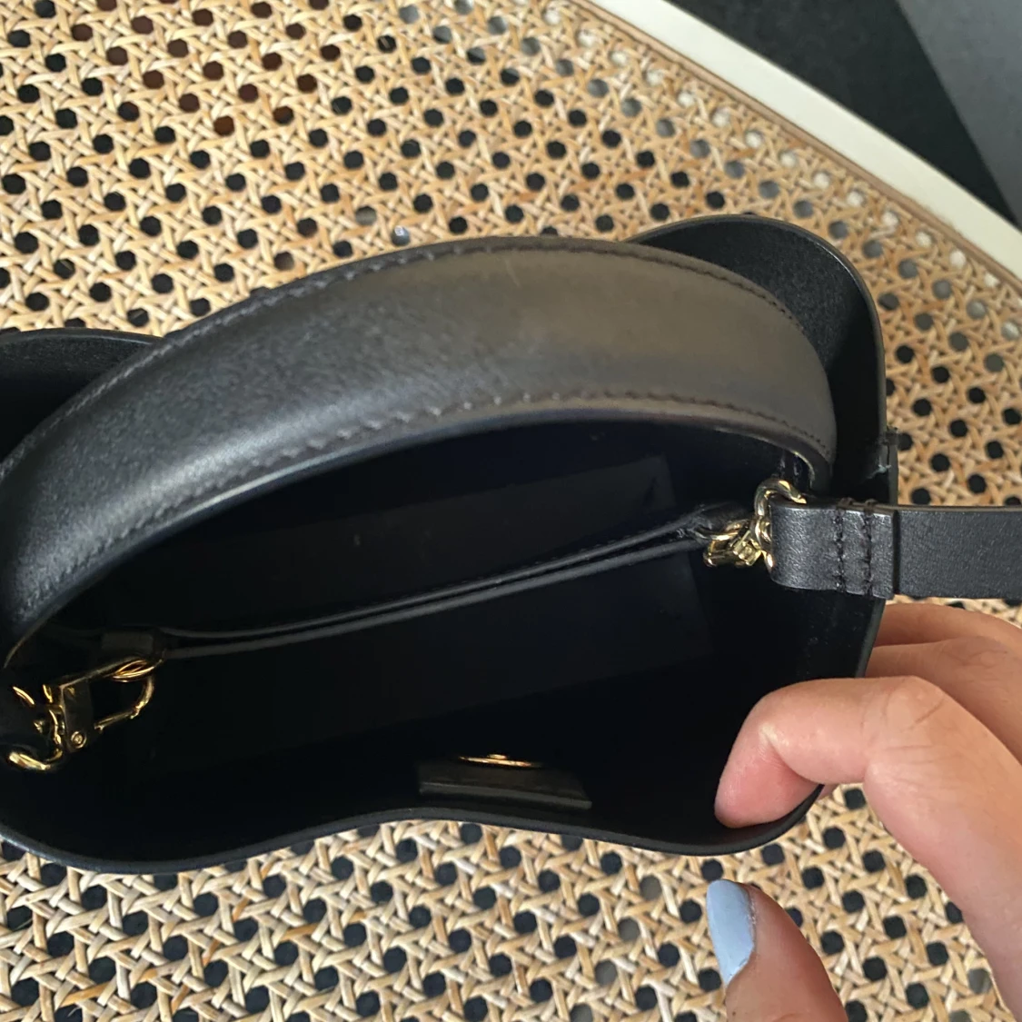 Svart axelremsväska från arket i fejk skinn. Extremt bra kvalitet! Delar gärna fler bilder vid förfrågan. Säljer på grund av att den inte kommit till användning. 100% läder. Mått: 14x17x6. Inköpsdatum 2023-08-17. Väl omhändertagen.