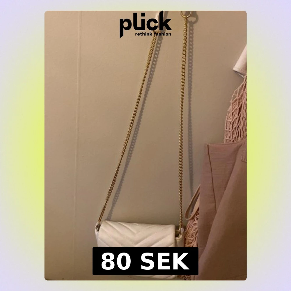 Snygg vit axelväska med quiltad design och guldfärgad kedjerem. Väskan har en stilren och modern look, perfekt för att lyfta vilken outfit som helst. Tillverkad i syntetmaterial och har en kompakt, rektangulär form.
