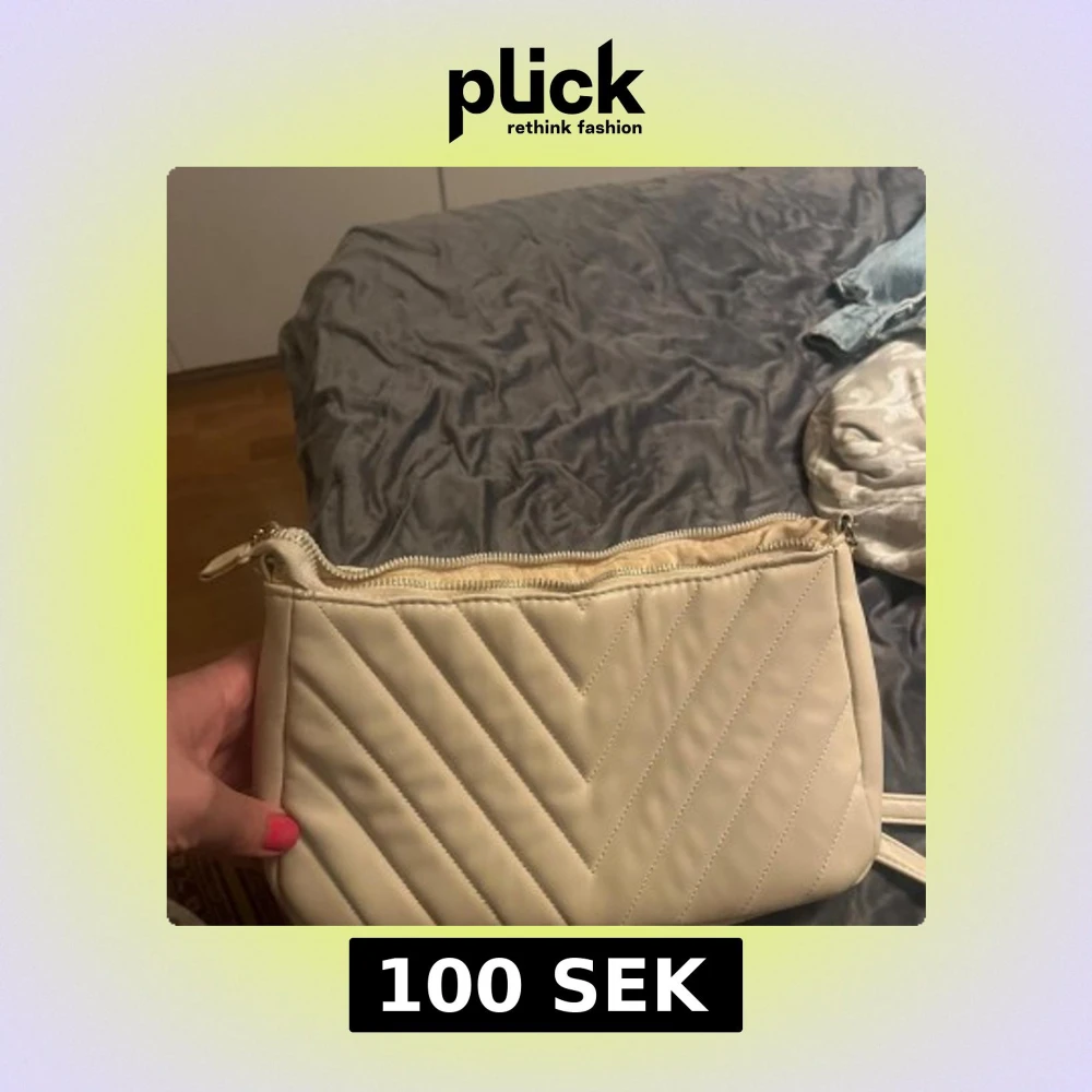 Säljer en stilren beige axelväska med quiltad design och dragkedja upptill. Väskan har en enkel och snygg look som passar till många outfits. Perfekt storlek för det viktigaste och lätt att bära över axeln.