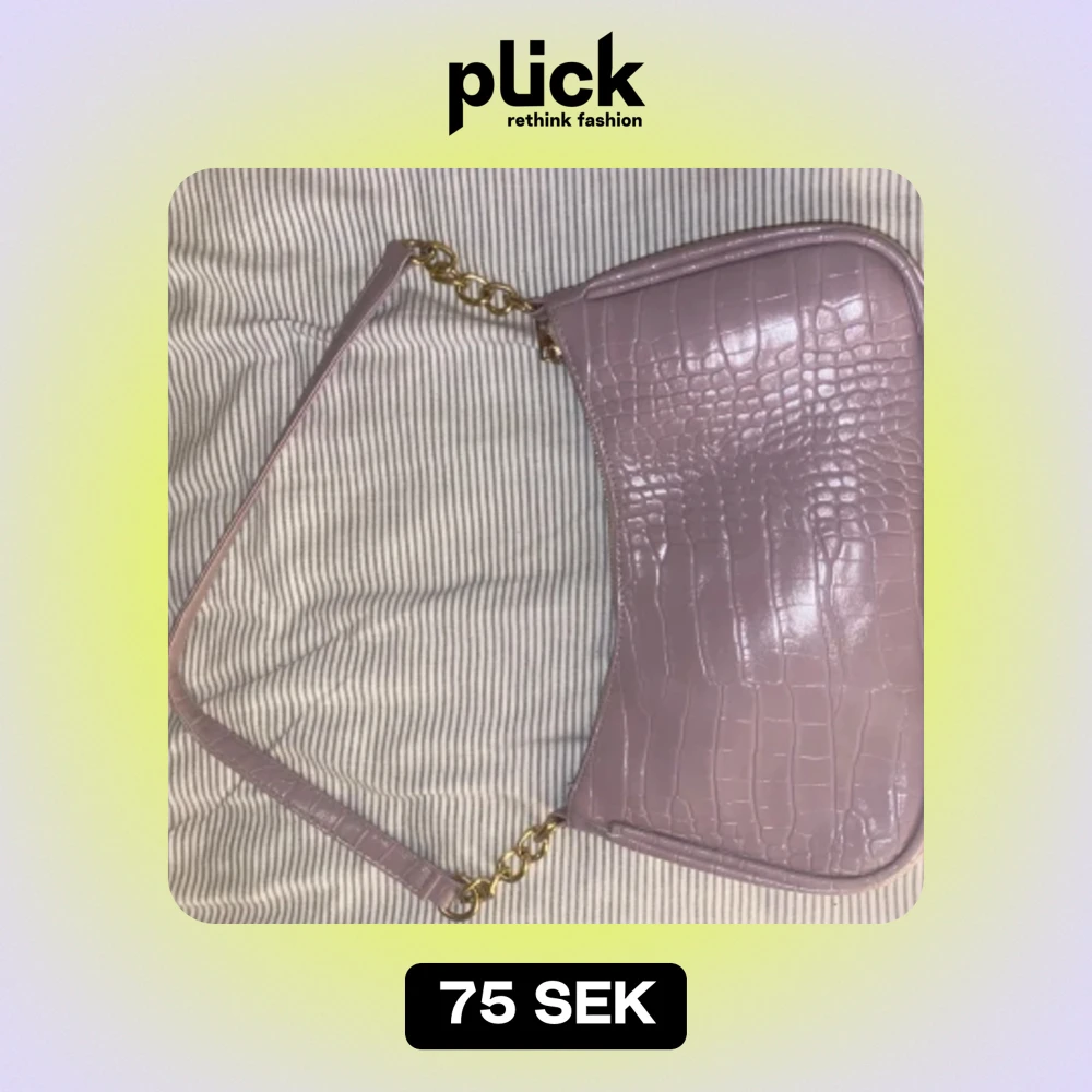 Säljer en superfin ljusrosa axelväska från Glitter. Väskan har ett snyggt krokodilpräglat mönster och en guldfärgad kedja som detalj. Den har en dragkedja upptill och är perfekt för både vardag och fest. Väskan är i syntetmaterial och har en stilren design.