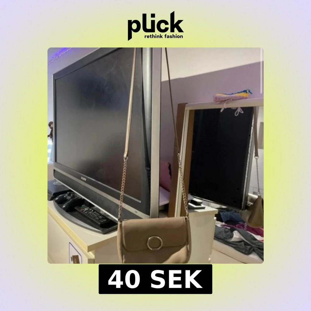 Säljer en stilren beige axelväska med silverfärgad kedjerem och snygg rund metallring på locket. Väskan har en kompakt och smidig form, perfekt för att bära det viktigaste. Passar till många olika outfits och är lätt att matcha.