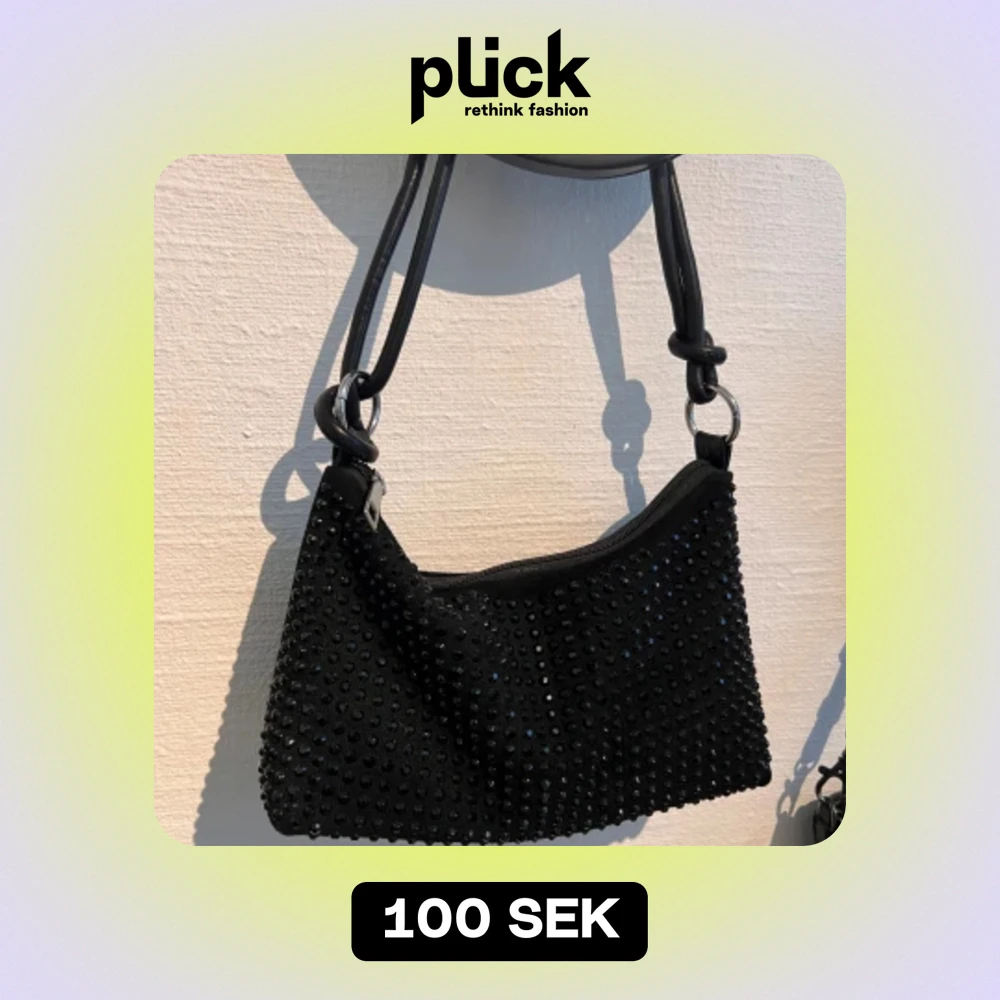 Svart glitterväska i nytt skick då den är använd endast en gång. Väldigt rymlig och justerbar