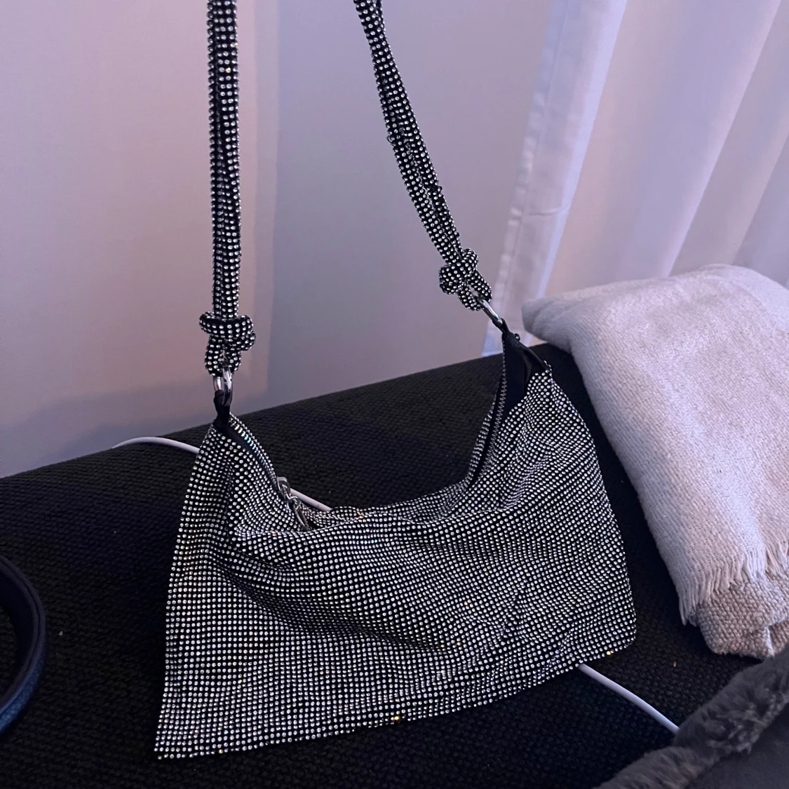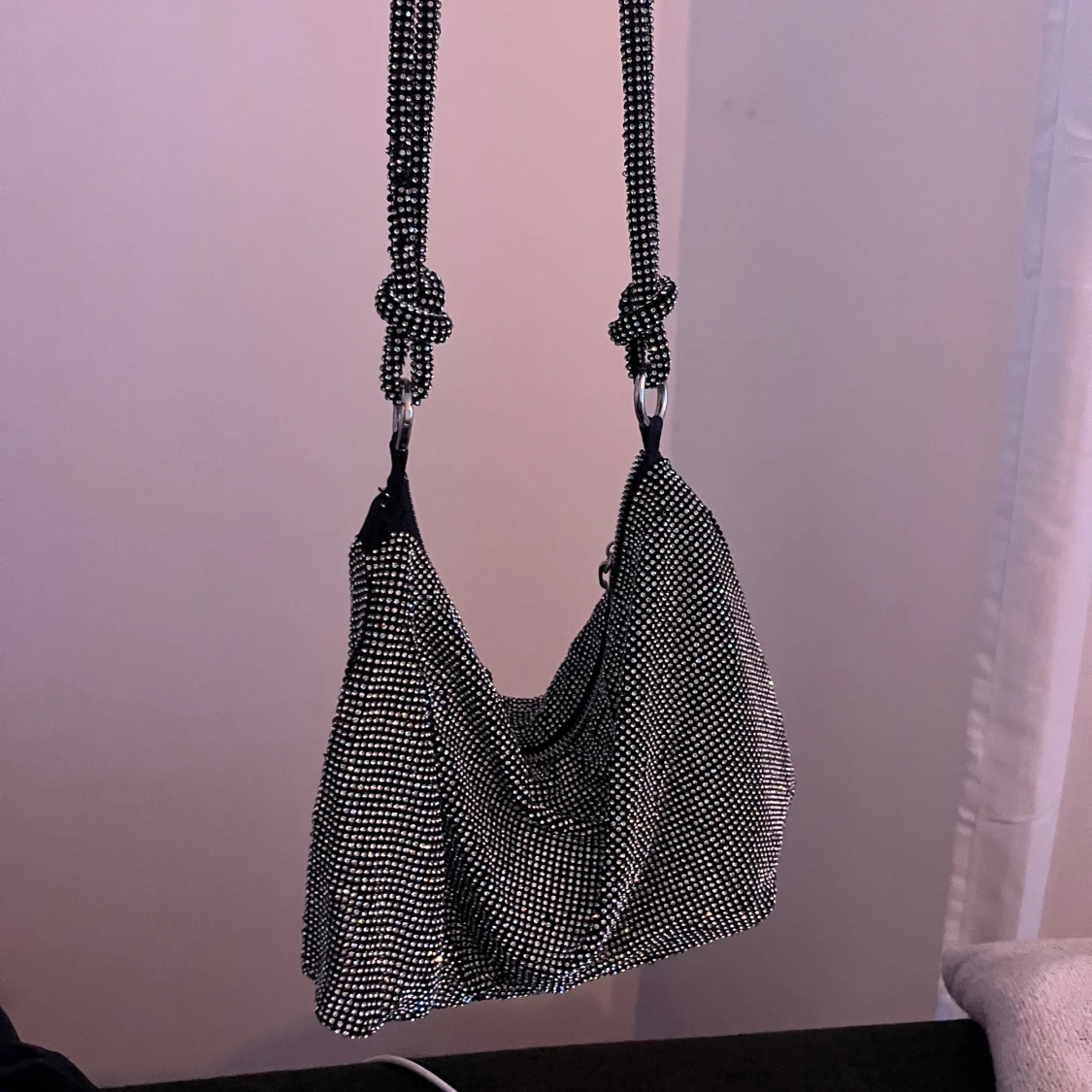 Glittrig axelväska