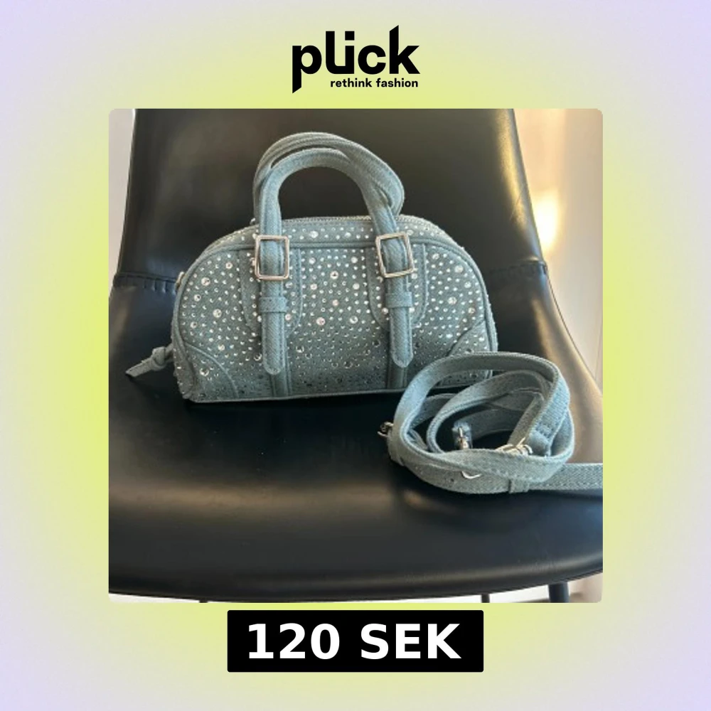 Snygg axelväska i jeansmaterial från Zara, dekorerad med glittriga detaljer. Väskan har dubbla handtag och en justerbar axelrem. Perfekt för att ge din outfit lite extra bling!