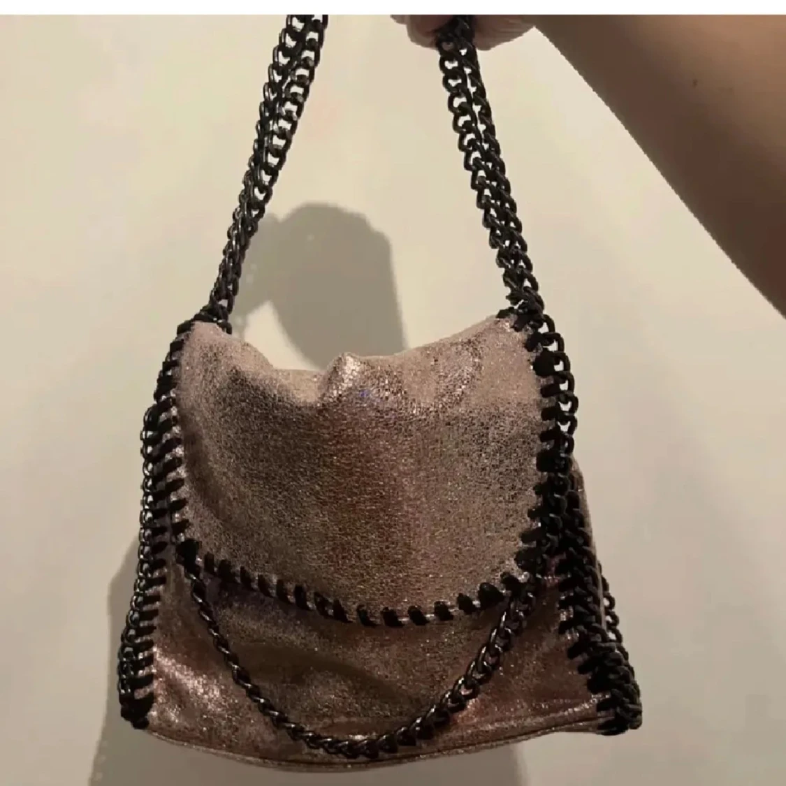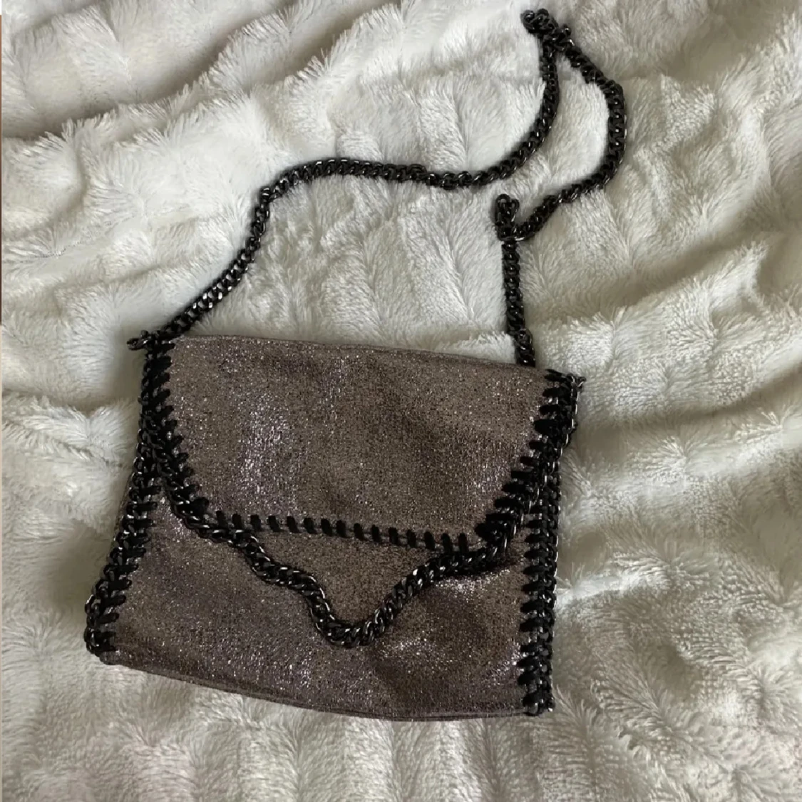 Glittrig axelväska med kedjedetaljer