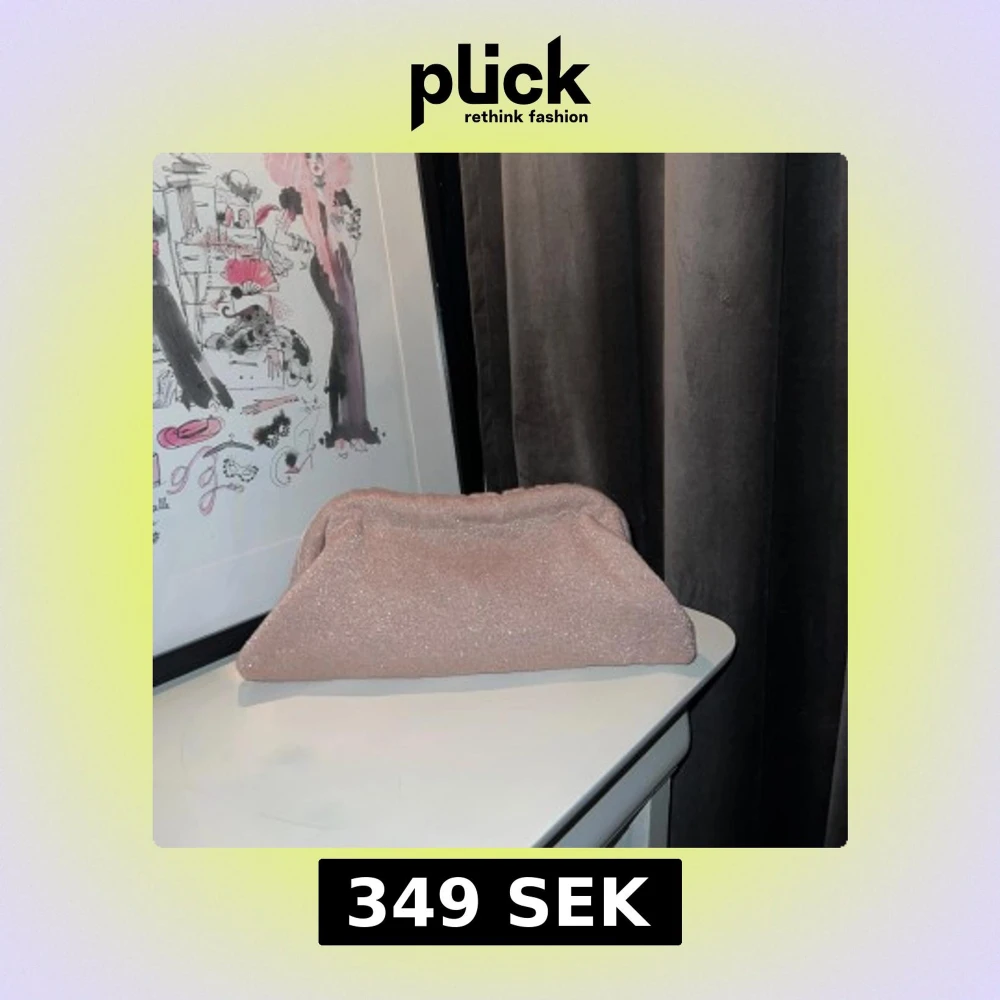 Säljer en superfin clutch väska i glittrigt rosa material. Väskan är från mitt uf företag Válorie och är handsydd av oss i företaget av återanvända tyger.