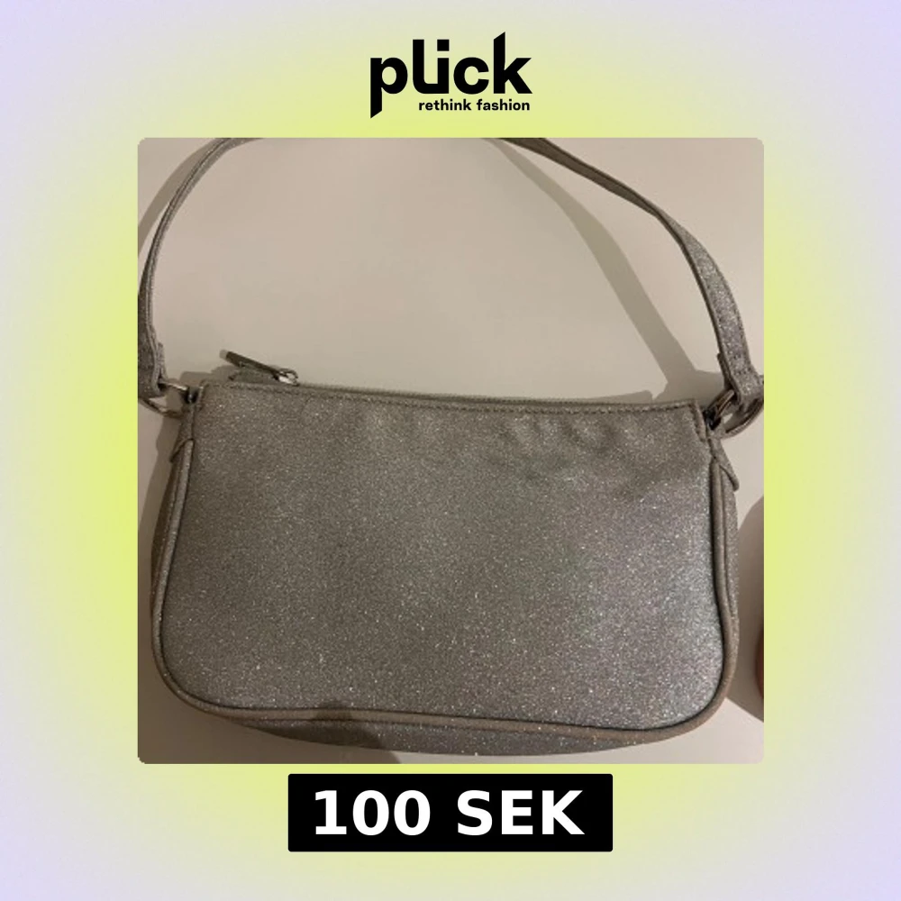 Säljer en snygg axelväska i glittrigt silver med dragkedja upptill. Väskan har en enkel, stilren design och ett axelband i samma glittriga material. Perfekt för att lyfta vilken outfit som helst med lite extra bling.