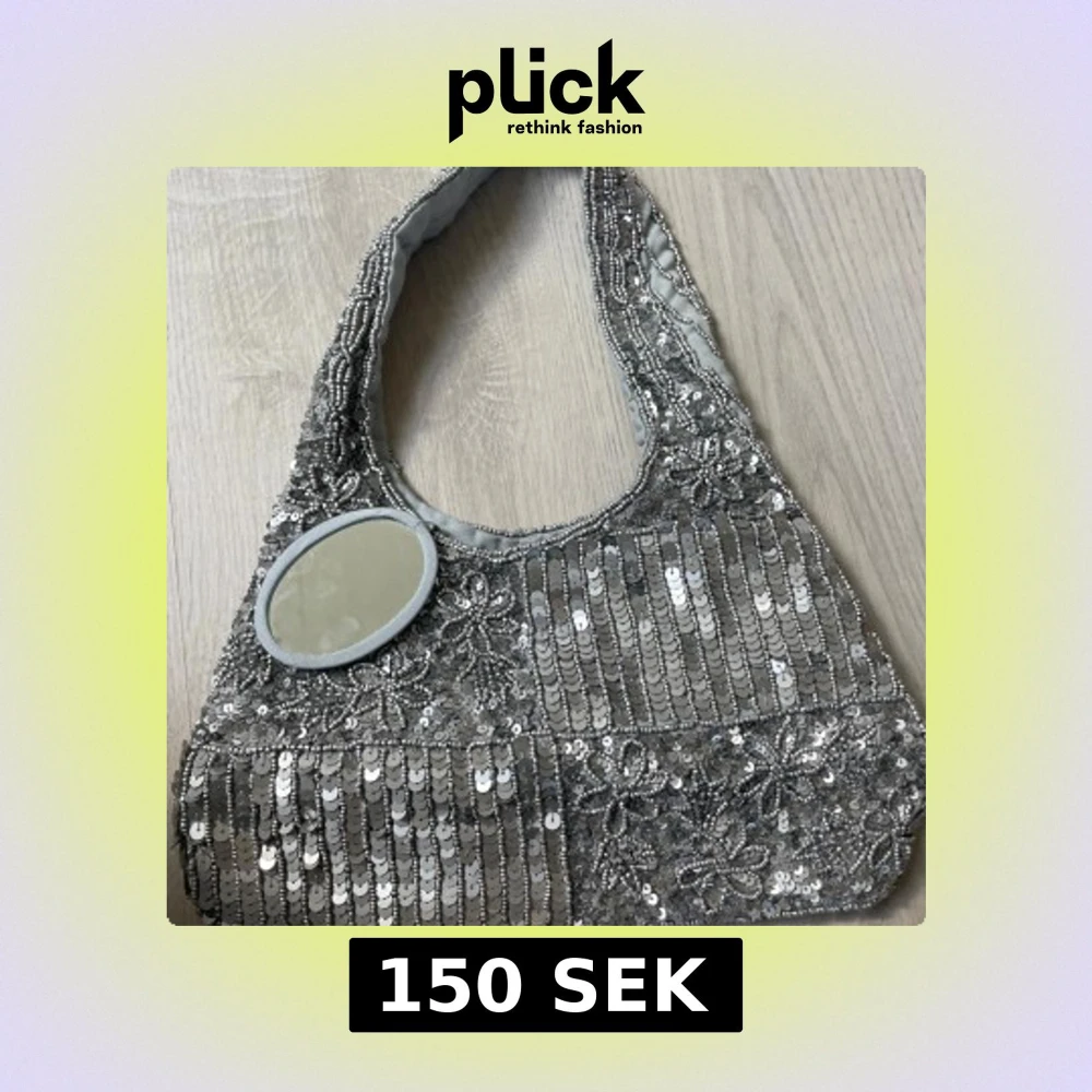 Den perfekta festväskan! Glittrig med broderade paljetter och pärlor. Även tillhörande liten spegel som sitter fast i väskan💫