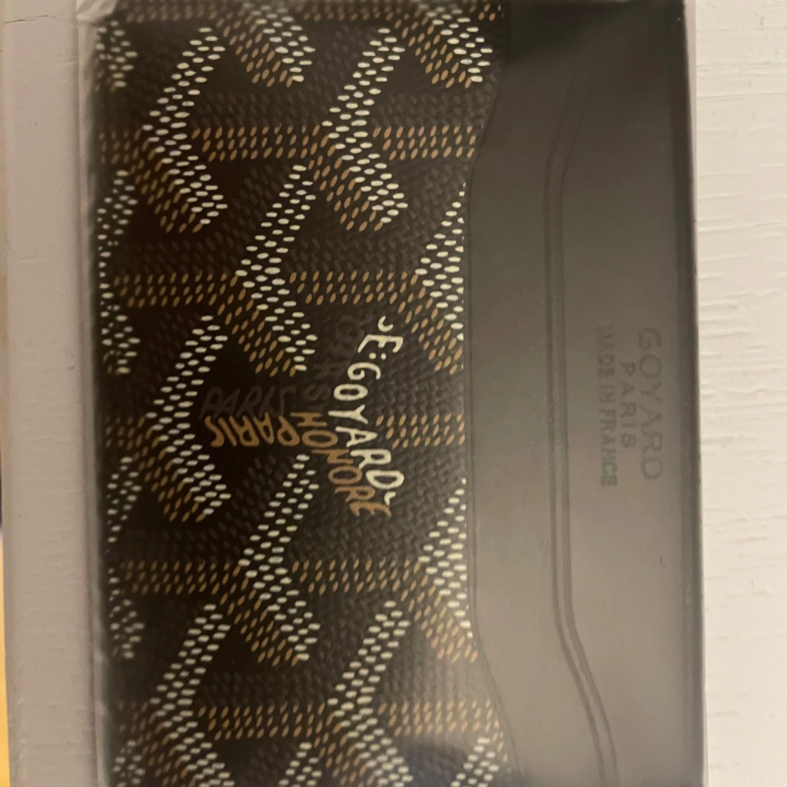 Säljer en exklusiv plånbok från Go7ard i brunt och svart med deras ikoniska grafiska mönster. Plånboken har flera kortfack och är tillverkad i skinn med detaljer i beige och vitt. Kommer i original grön ask med silverlogga.