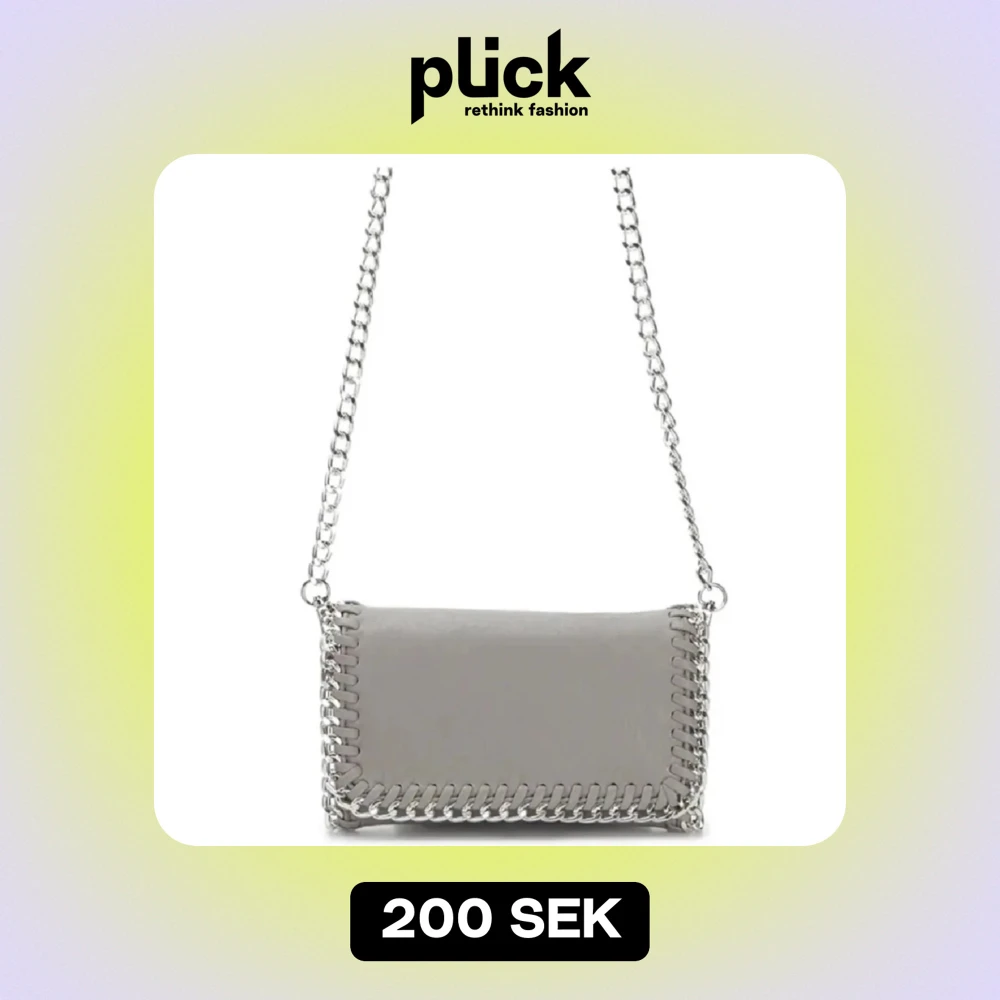 Snygg grå axelväska med coola kedjedetaljer runt kanterna och en kedjerem. Sista bilden ser man att den är lite sliten vid kanterna, men är inget som man tänker på💕