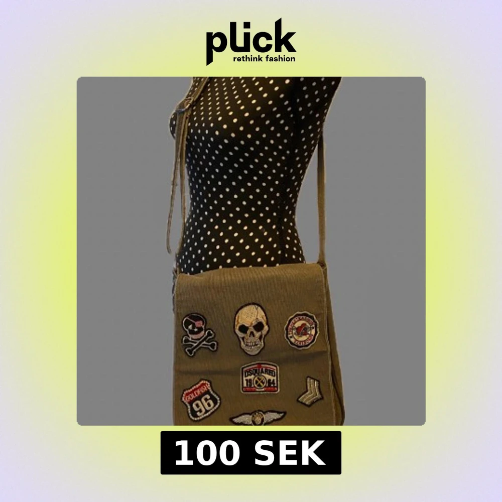 Cool grå/grön axelväska med flera broderade patchar på framsidan, Väskan har en lång axelrem som är omställbar och är i bra skick. Nästan helt oanvänd. Köpte på marknad men fick en ny väska precis efter och de slutade me att den aldrig blev andvänd. Den har ett innerfack och man får plats med det mesta.