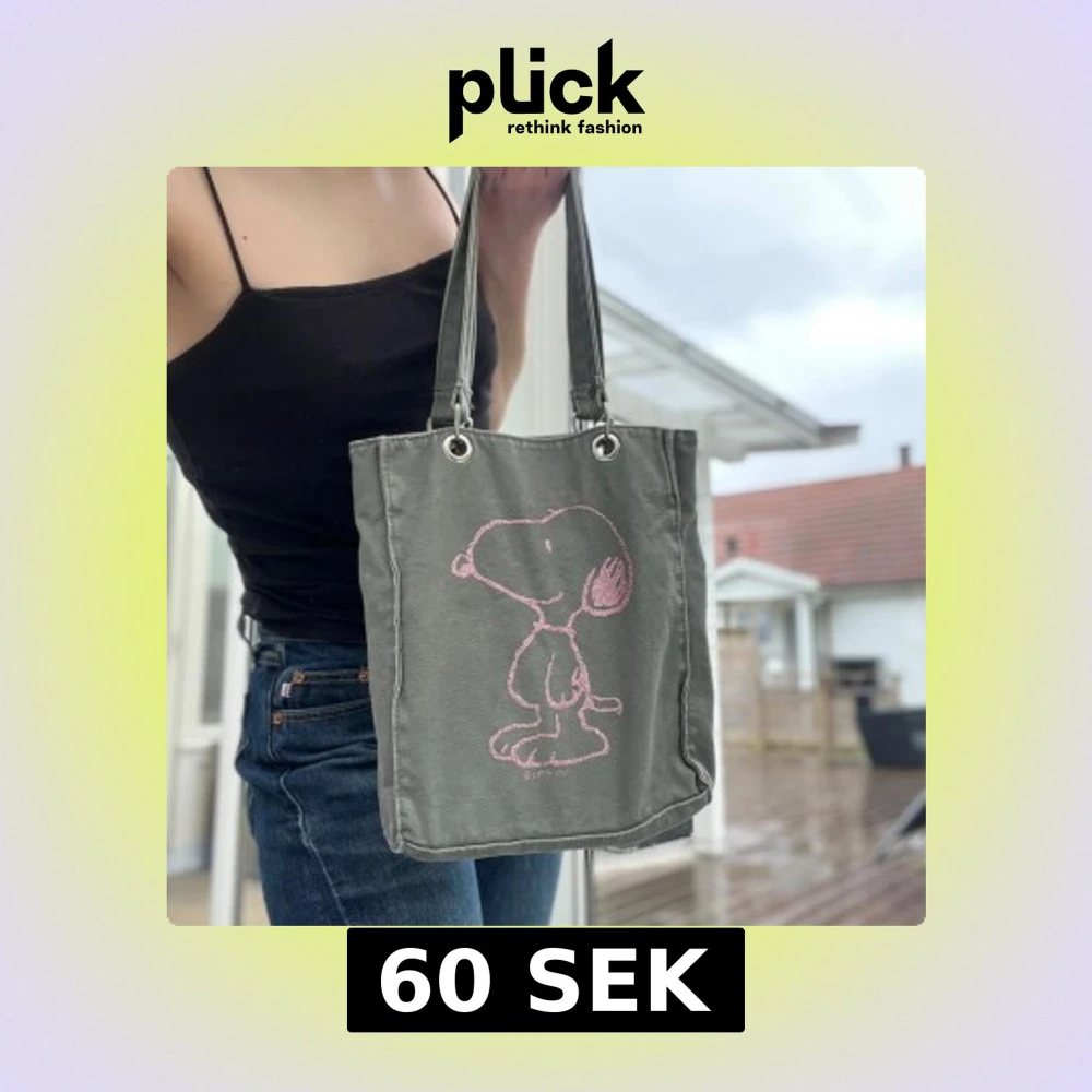Grön snobbenväska. Snoopy Perfekt i storlek för att bära block eller en dator.