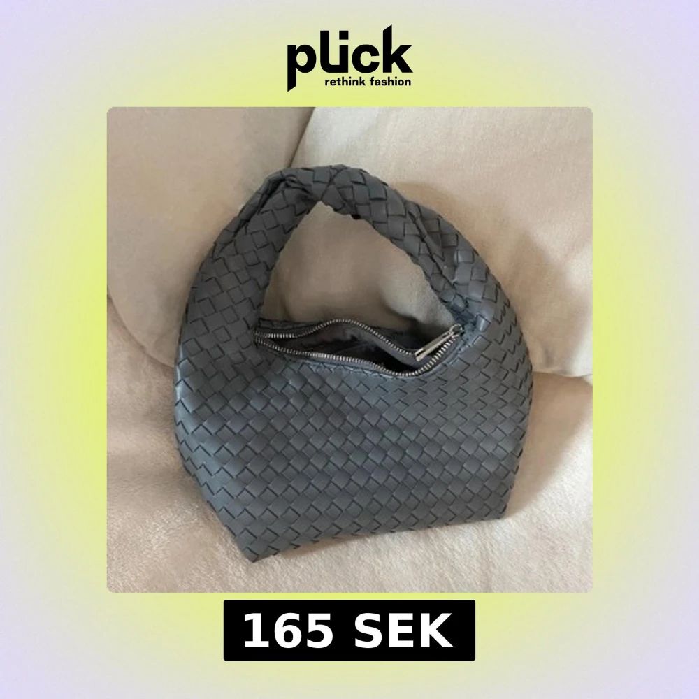Snygg grå handväska från Gina Tricot med flätad design och silvrig dragkedja. 💕