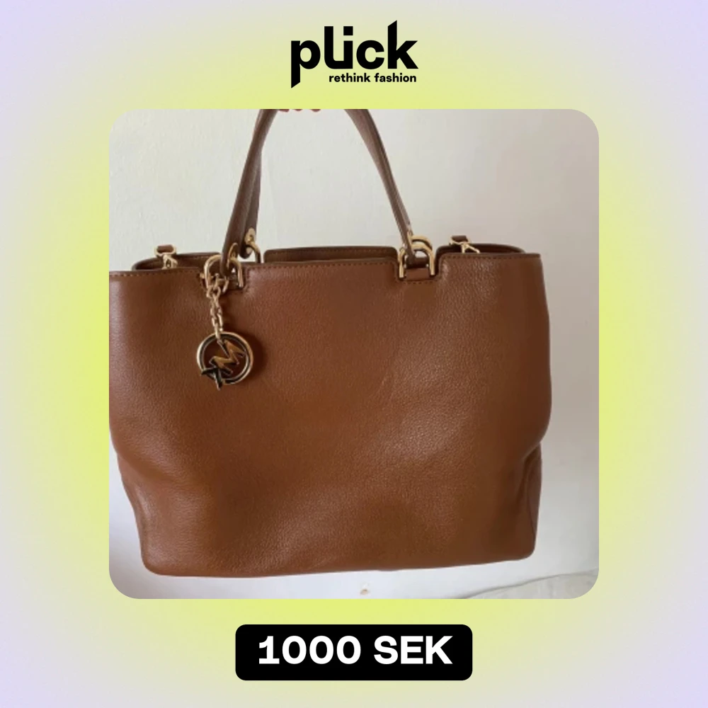 Säljer en snygg brun skinnväska från Michael Kors. Den har både handtag och en axelrem, vilket gör den superpraktisk. Väskan har en fin gulddetalj med MK-loggan och en dragkedja upptill. Insidan är rymlig med flera fack för att organisera dina grejer. Perfekt för både vardag och fest! 2st band ingår långt och kort + dustbag om det önskas!