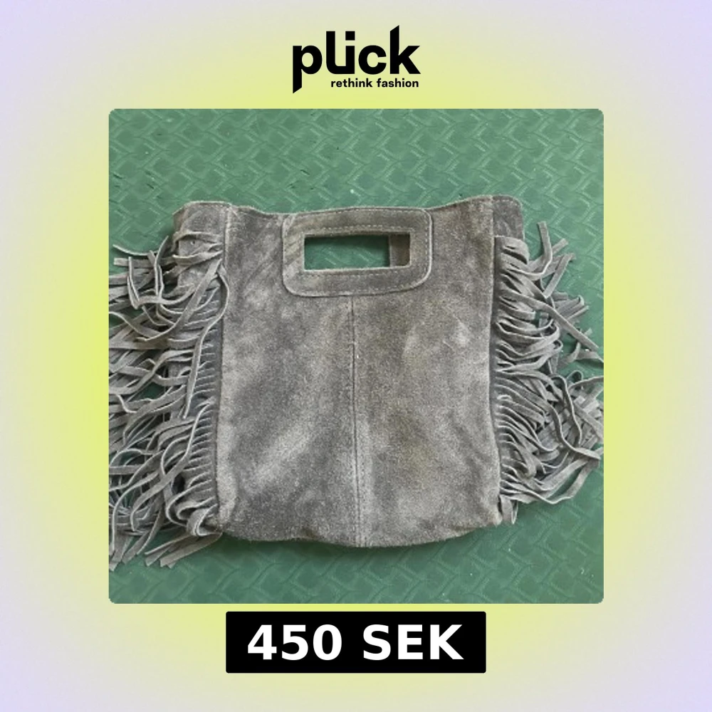 ”Maje väska” liknande Snygg grå handväska i mocka med rektangulärt handtag och coola fransar längs sidorna. Perfekt accessoar för dig som vill sticka ut med en bohemisk touch. Väskan har en mjuk känsla och unik design. Äkta mocka🤎