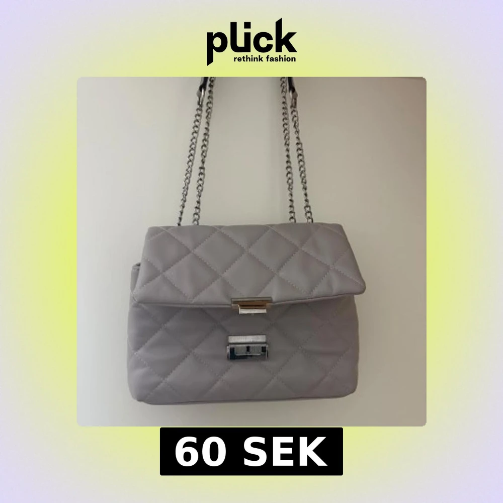 Snygg grå axelväska med quiltat mönster och silverfärgad kedjerem. Väskan har ett lock med metallspänne och ett innerfack med dragkedja. Perfekt för att bära det viktigaste med stil.(pris går diskutera)