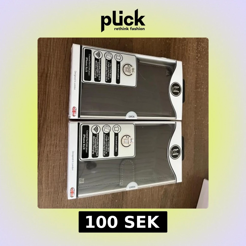 Säljer en stilren grå plånboksväska från U Unique London, designad för iPhone X/Xs. Väskan är tillverkad i äkta skinn och har praktiska fack för kort och kontanter. Perfekt för dig som vill ha både mobilskydd och plånbok i ett. 100kr st
