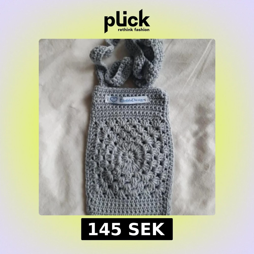 Säljer en handgjord grå virkad axelväska från ElindaDesign. Väskan har ett unikt mönster framtill och en bred, virkad axelrem. Perfekt för att bära småsaker och ge din outfit en personlig touch. Väskan är ca 18 x 12 cm. Perfekt till mobilen.