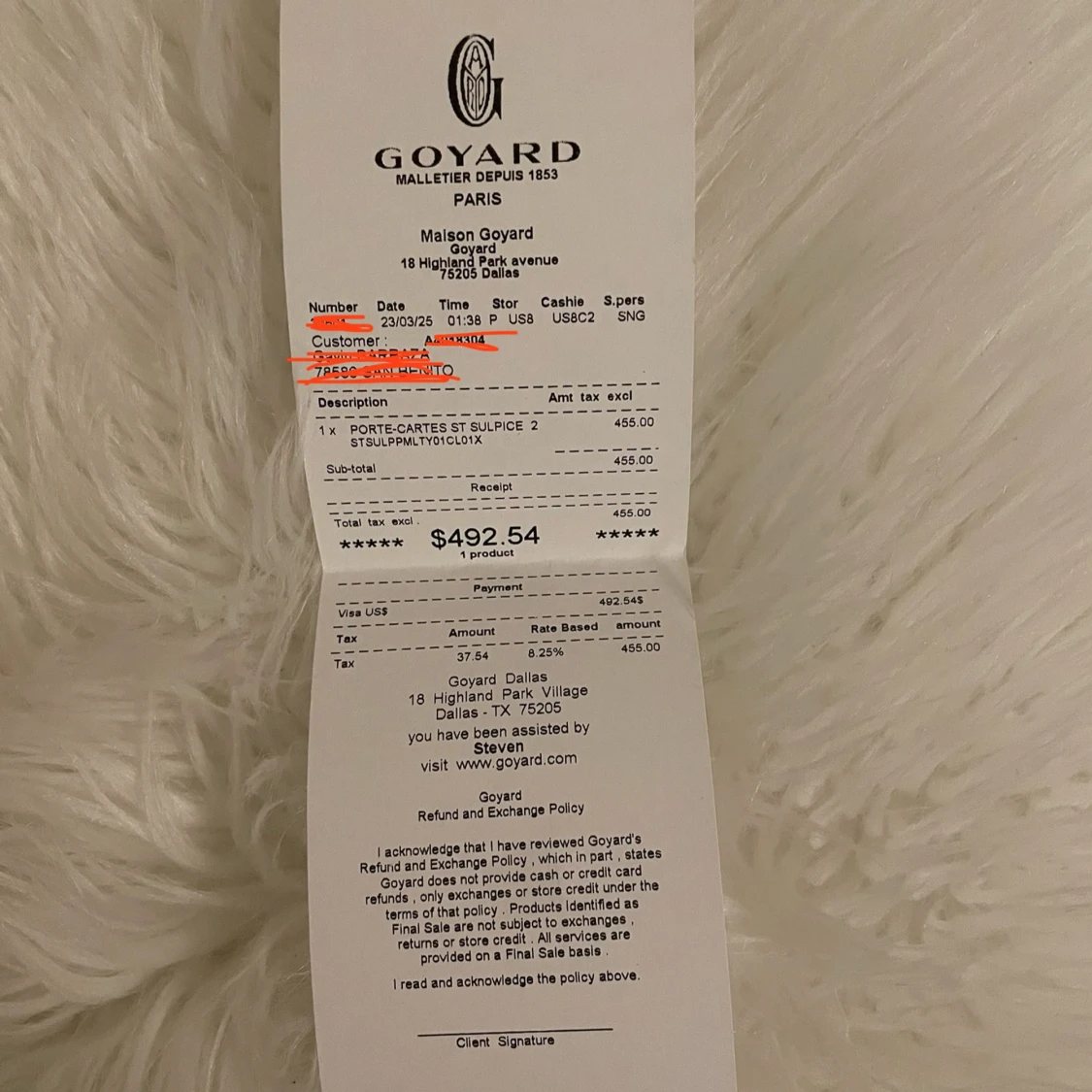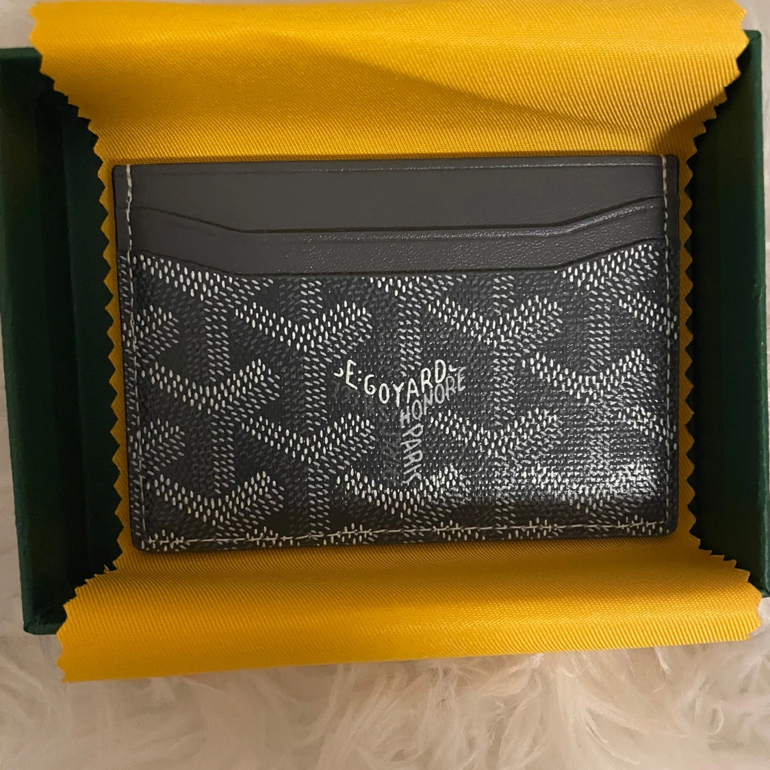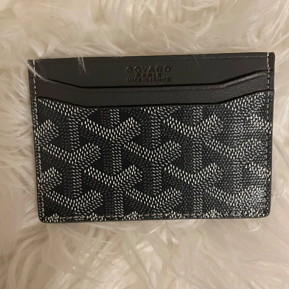 Supersnygg svart plånbok från Goy4rd med deras ikoniska grafiska mönster i vitt och grått. Slimmad design med flera kortfack, perfekt för dig som vill ha något stilrent och lyxigt i fickan. Kommer med originalask, dustbag och kvitto.