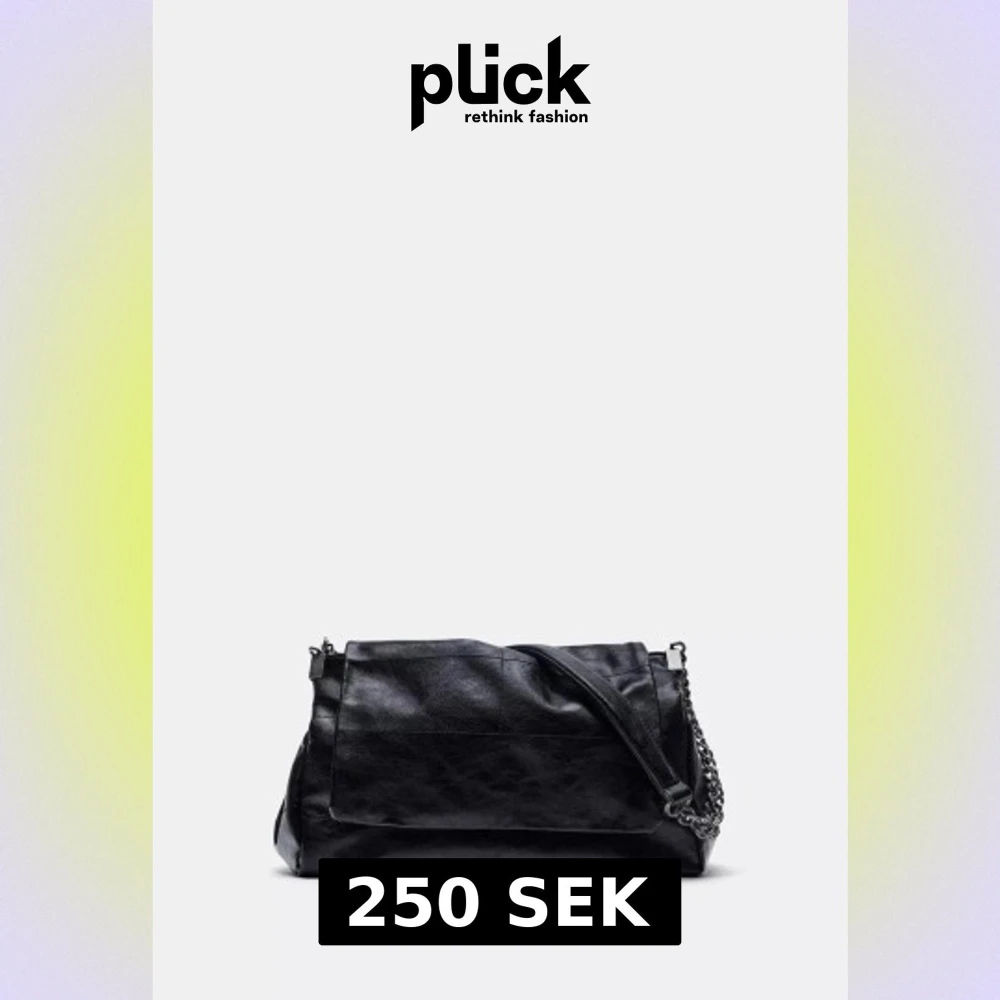 Stilren svart axelväska i mjukt skinn med bred lock och cool kedjedetalj på axelremmen. Väskan har dragkedja upptill och rymligt fack för dina essentials. Perfekt storlek för att ha med sig allt man behöver och ger en edgy vibe till din outfit. Knappasy använd då den inte är min stil