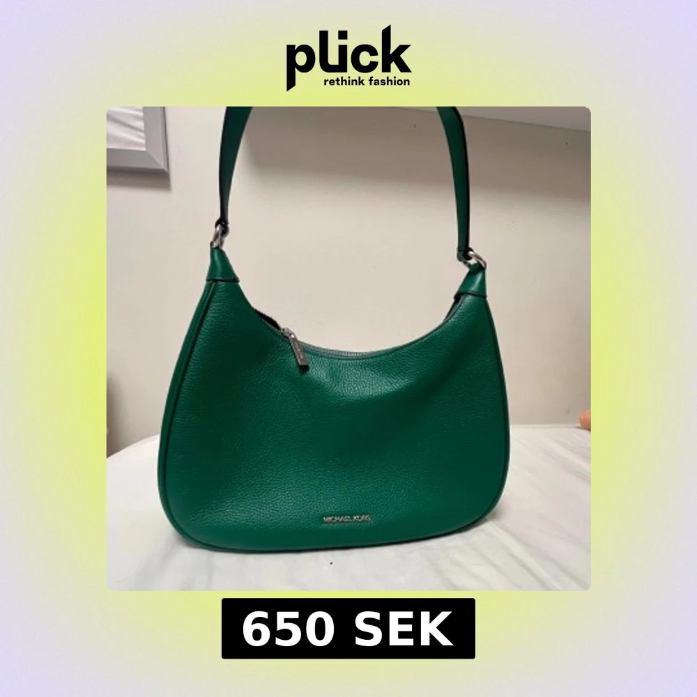 Snygg grön axelväska från Michael Kors med silverfärgade metalldetaljer och dragkedja upptill. Väskan har en stilren, rundad form och bred axelrem för extra komfort. Perfekt för dig som vill sticka ut med en färgglad accessoar.