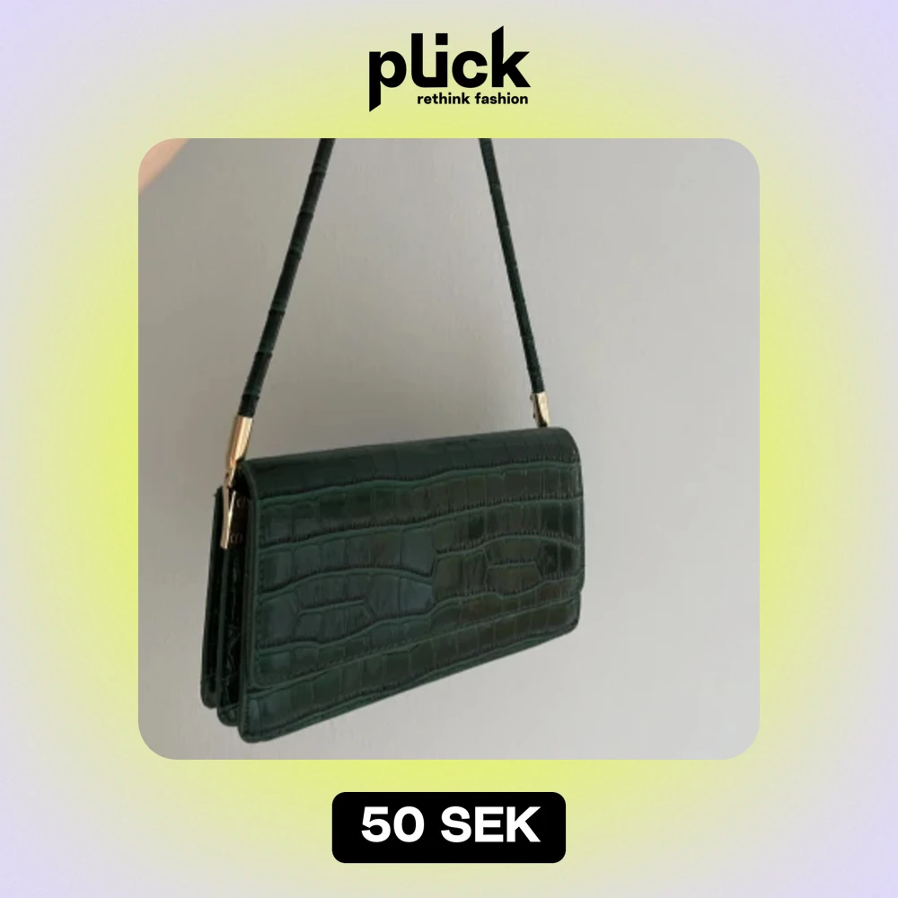Grön liten crocmönstrad baguetteväska från shein! Aldrig använd och är i ordentligt material