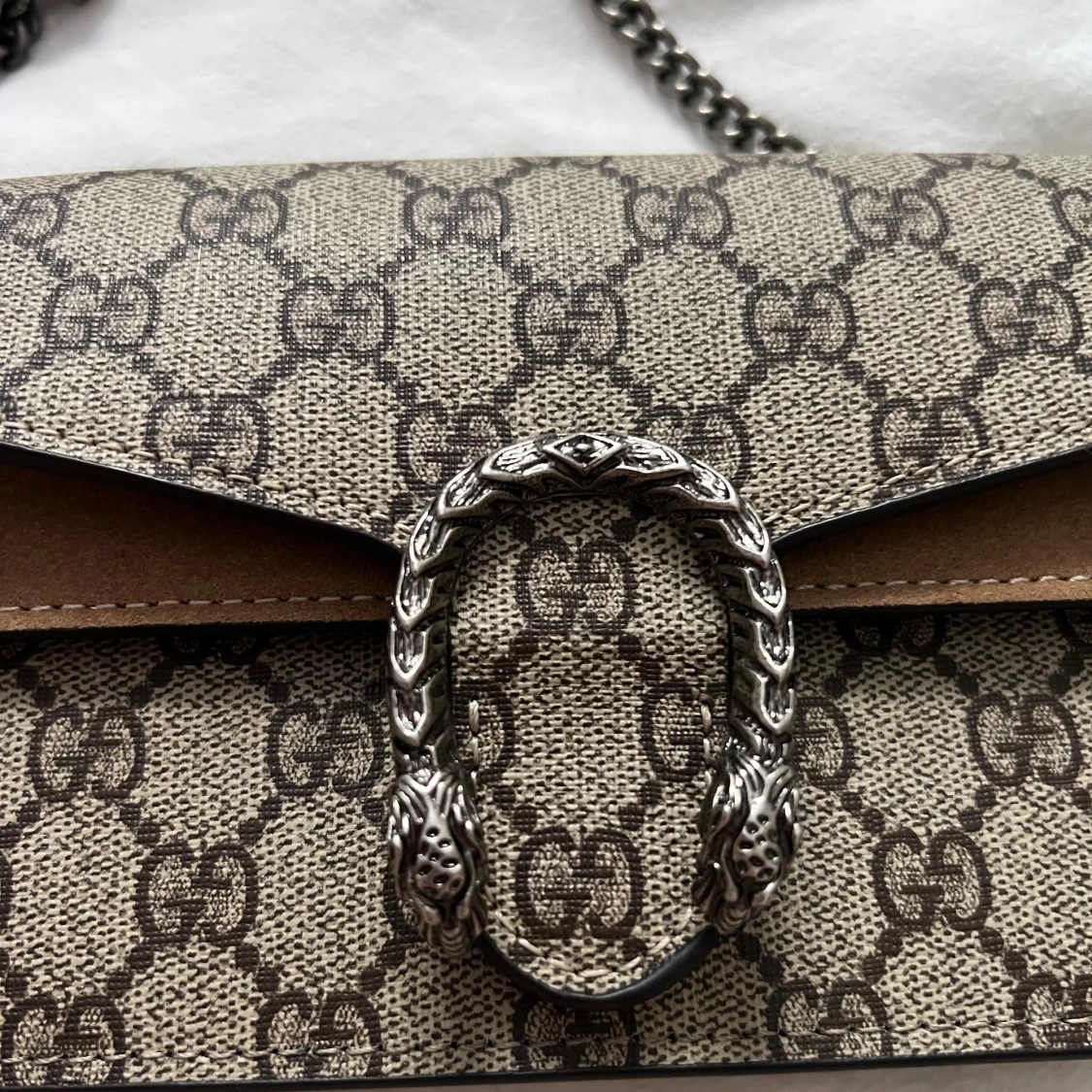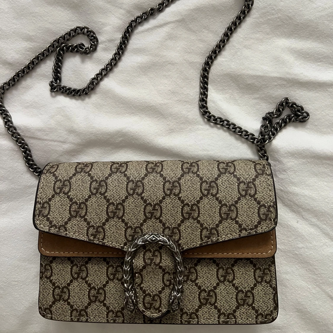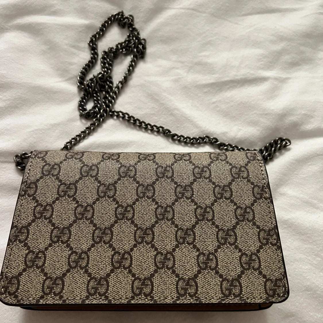 Väskan har en snygg silverfärgad kedja och ikoniskt spänne med ormdetaljer. Tillverkad i skinn och canvas, perfekt storlek för det viktigaste. Lyxig och tidlös design med exklusiva detaljer.
