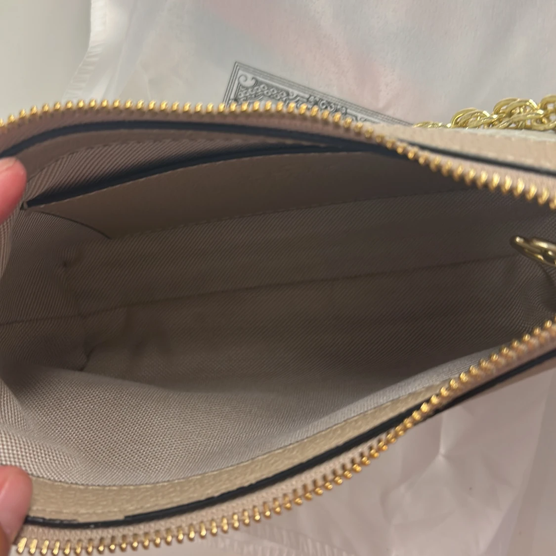 Beige axelväska från Gucci med kedja