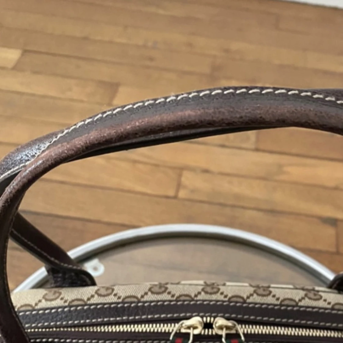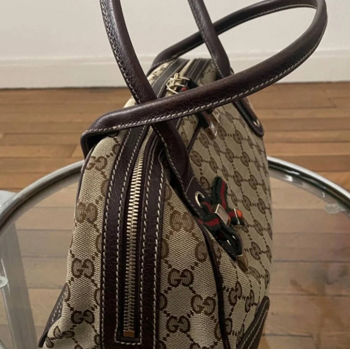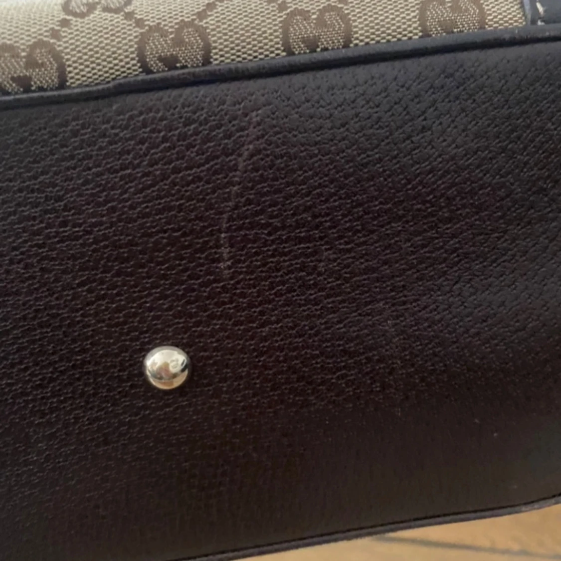 Snygg handväska från Gucci med klassiskt GG-mönster i beige och brunt. Väskan har mörkbruna skinn-detaljer, dubbla handtag och dragkedja upptill. Insidan är märkt med 'Gucci made in Italy'. Köpt från Vestaire collective, vill man ha mer bilder så hör av dig!