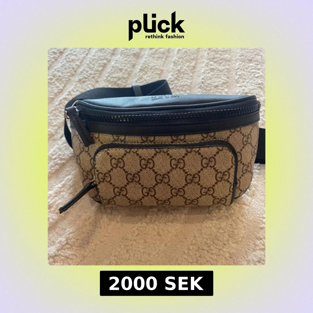 Säljer en snygg axelväska från Gucci med klassiskt GG-mönster i beige och brunt. Väskan har svarta skinn- och textildetaljer, justerbart band och dragkedjor både fram och bak. Perfekt för dig som vill ha en stilren och ikonisk accessoar.