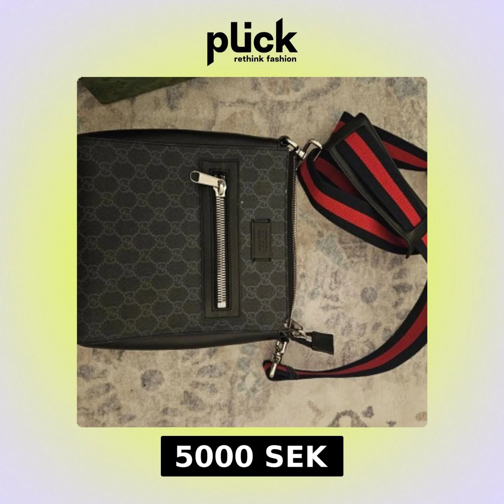 -------------ÄKTA GUCCI AXELVÄSKA--------------Snygg svart axelväska från Gucci med ett diskret mönster och en praktisk dragkedja framtil och innuti. Gucci märket på insidan so. Det skall vara. Väskan har en justerbar axelrem i rött och blått för extra stilpoäng som är avtagningsbara. Finns äkthetsintyg men inte upplagt på bild av säkerhetsskäl 👍 Hör av er för flera bilder elr andra frågor. Kolla mina andra annonser för mera märkeskläder och annat kul. Nypris 10 999. Mvh Streetlyxkollektionen
