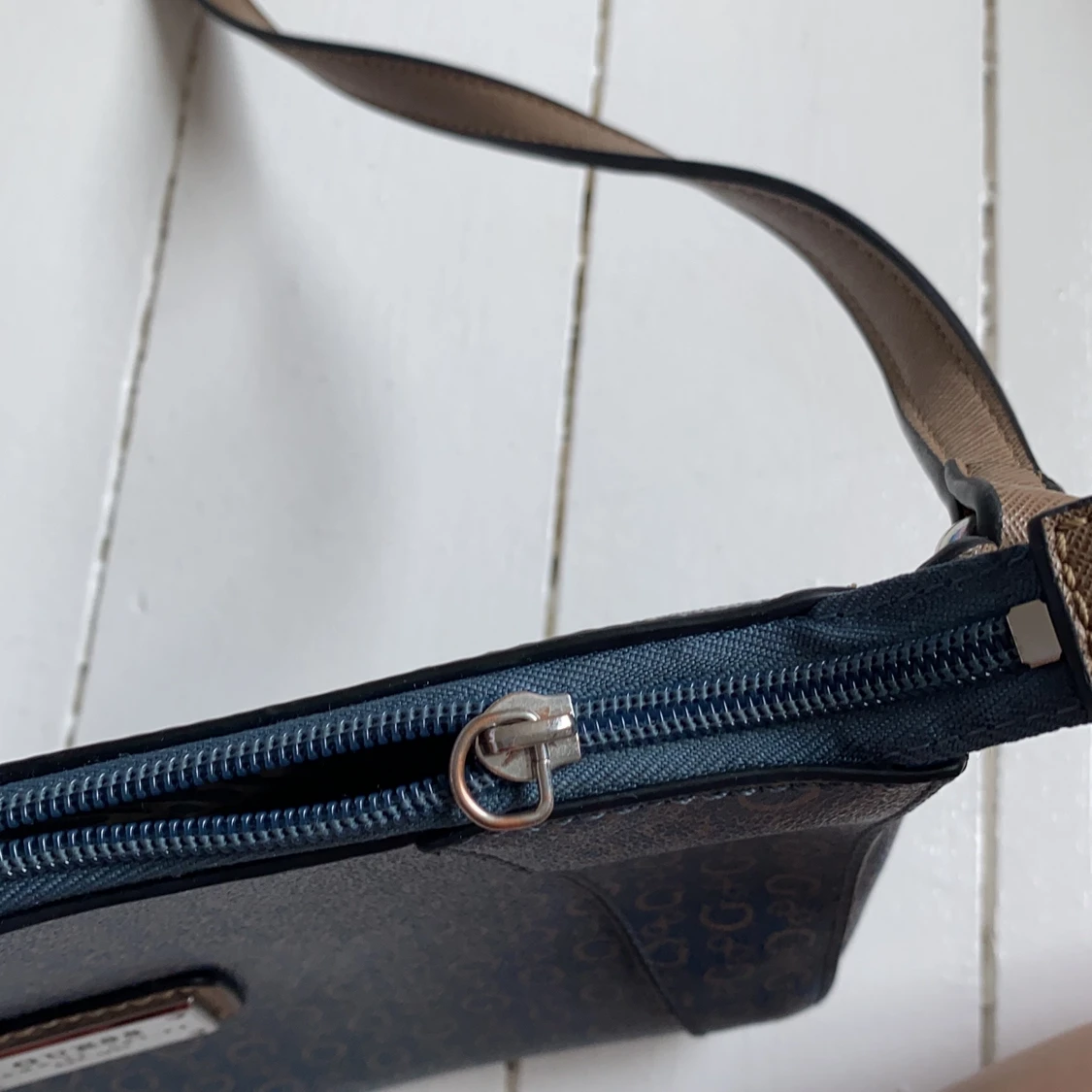 Jättefin axelremsväska från Guess i jättebra skick, förutom att det man drar dragkedjan med gått av men det går att sätta på en ny. 💞 buda alltid med minst 10 kr högre och kunden står för frakt 💖💖