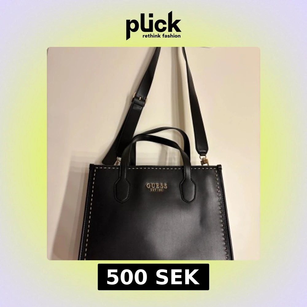 Snygg svart axelväska från Guess med stilrena detaljer och justerbar axelrem. Väskan har både handtag och axelrem, dekorativa sömmar runt kanterna och dragkedja på baksidan. Perfekt för dig som gillar klassisk och clean stil.