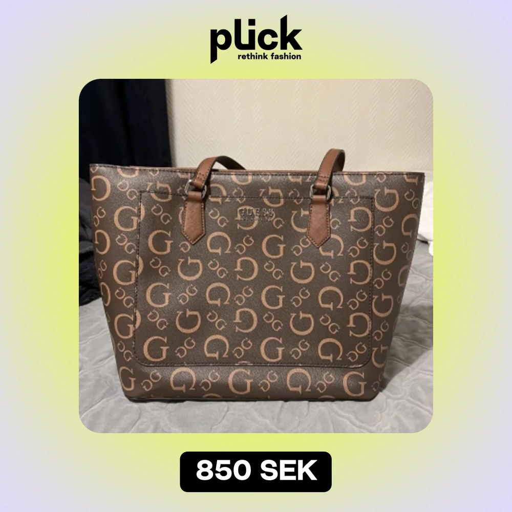Väskan är helt ny och är äkta. Den har inga som helst skador. Det finns en zip ficka inuti samt ett litet fack. Det finns ett till fack utanpå väskan som man också kan använda. Den är köpt i en Guess butik i Usa.